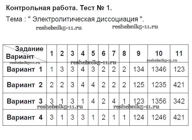 Готовая домашняя работа с ответами по Химии за 9 класс Боровских Тесты УМК Экзамен 2013 ФГОС - Контрольные работы КР-1. Электролитическая диссоциация