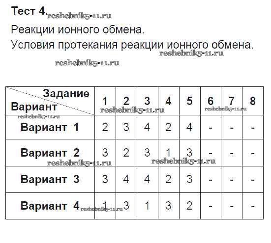 Готовая домашняя работа с ответами по Химии за 9 класс Боровских Тесты УМК Экзамен 2013 ФГОС - Тесты Тест-4. Реакции ионного обмена
