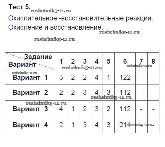 Готовая домашняя работа с ответами по Химии за 9 класс Боровских Тесты УМК Экзамен 2013 ФГОС - Тесты Тест-5. Окисление и восстановление