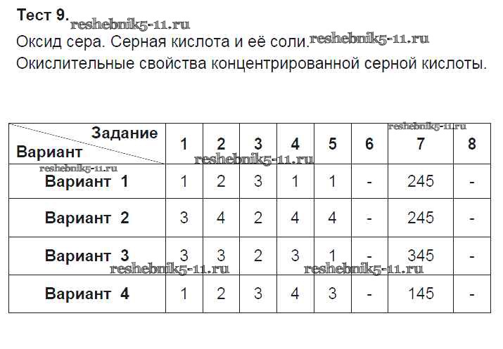 Готовая домашняя работа с ответами по Химии за 9 класс Боровских Тесты УМК Экзамен 2013 ФГОС - Тесты Тест-9. Оксид сера. Серная кислота и её соли