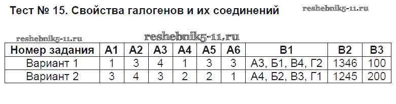 Решебник / тест / тест №15. Свойства галогенов и их соединений