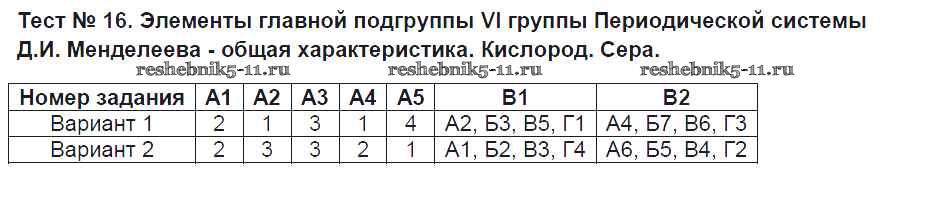 Решебник / тест / тест №16. Элементы главной подгруппы vi группы Периодической системы Д.И. Менделеева - общая характеристика. Кислород. Сера