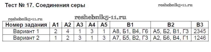 Готовая домашняя работа с ответами по Химии за 9 класс Стрельникова Контрольно-измерительные материалы (КИМ) ВАКО 2017 ФГОС - Тесты Тест №17. Соединения серы