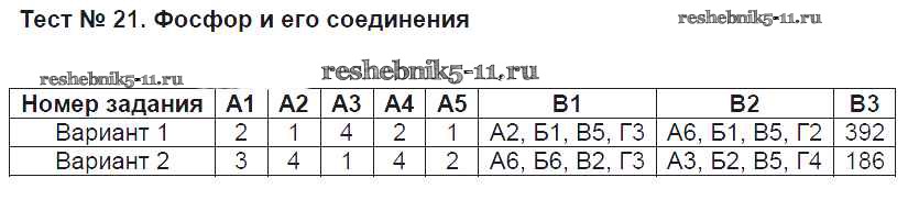 Готовая домашняя работа с ответами по Химии за 9 класс Стрельникова Контрольно-измерительные материалы (КИМ) ВАКО 2017 ФГОС - Тесты Тест №21. Фосфор и его соединения