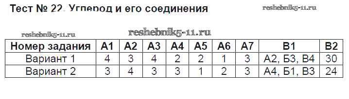 Готовая домашняя работа с ответами по Химии за 9 класс Стрельникова Контрольно-измерительные материалы (КИМ) ВАКО 2017 ФГОС - Тесты Тест №22. Углерод и его соединения