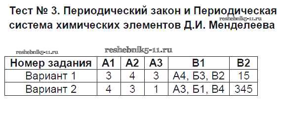Решебник / тест / тест №3. Периодический закон и Периодическая система химических элементов Д.И. Менделеева