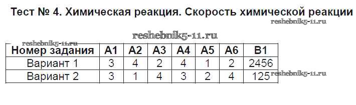 Готовая домашняя работа с ответами по Химии за 9 класс Стрельникова Контрольно-измерительные материалы (КИМ) ВАКО 2017 ФГОС - Тесты Тест №4. Химическая реакция. Скорость химической реакции