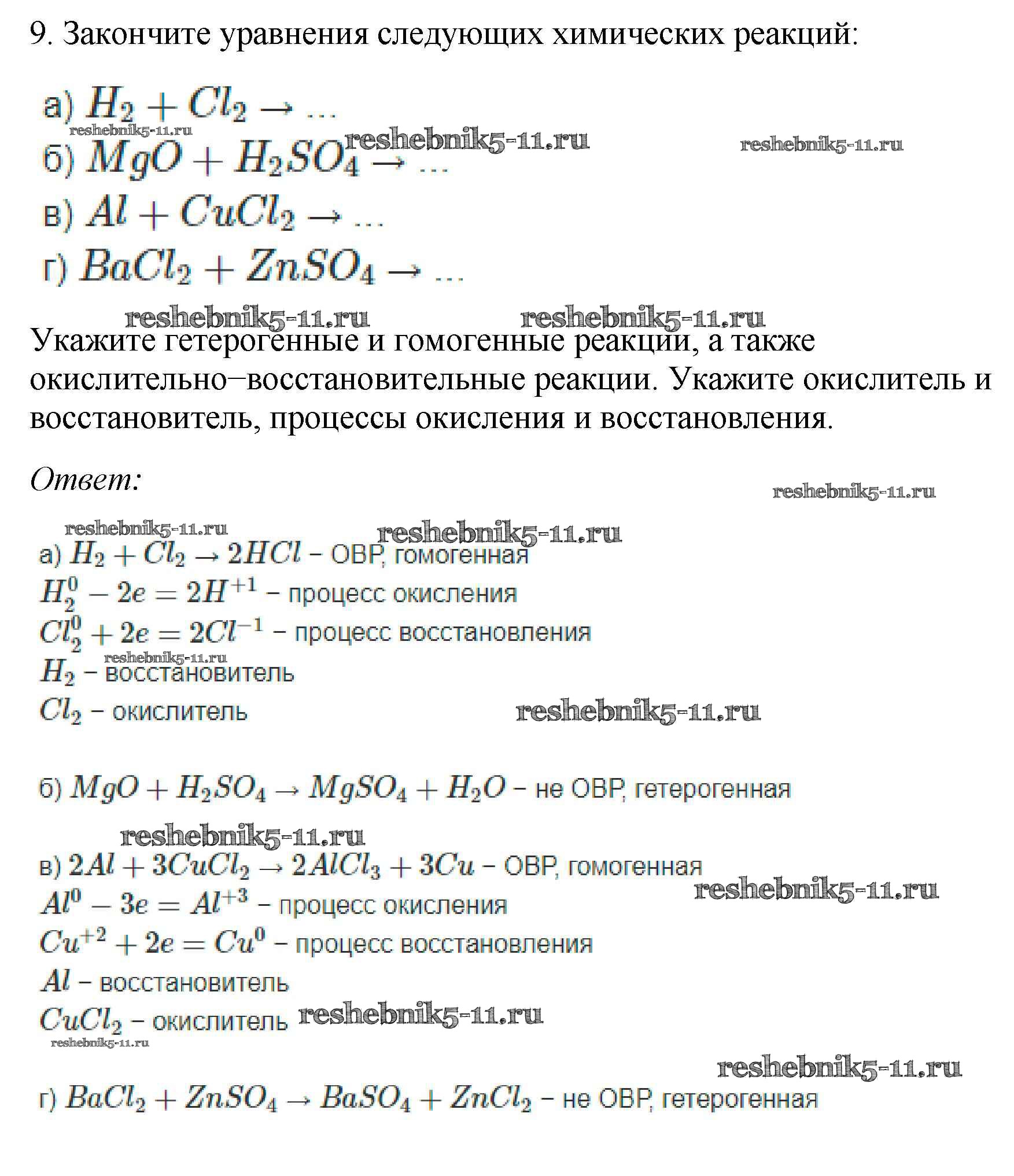 Готовая домашняя работа с ответами по Химии за 9 класс Габриелян, Остроумов, Сладков Учебник Просвещение 2021 ФГОС - §2. Классификация химических реакций 9