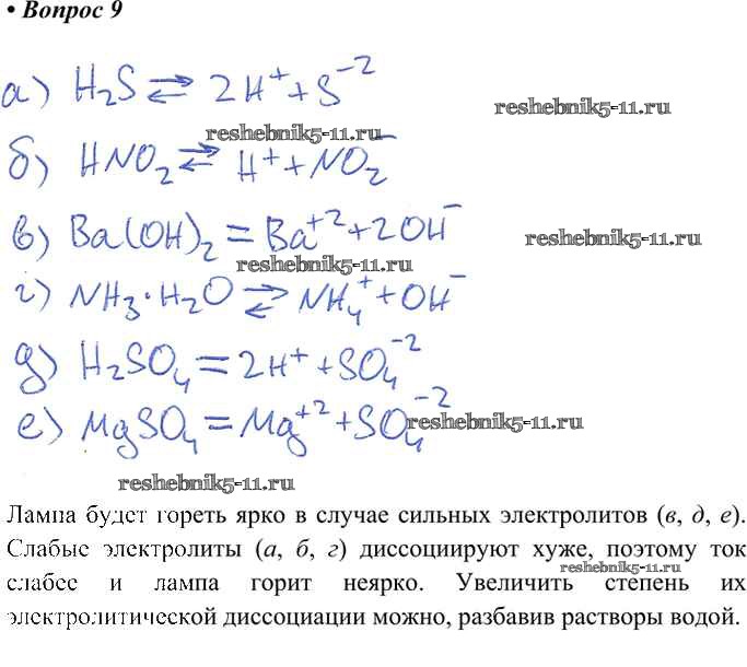 Готовая домашняя работа с ответами по Химии за 9 класс Габриелян, Остроумов, Сладков Учебник Просвещение 2021 ФГОС - §4. Электролитическая диссоциация 9