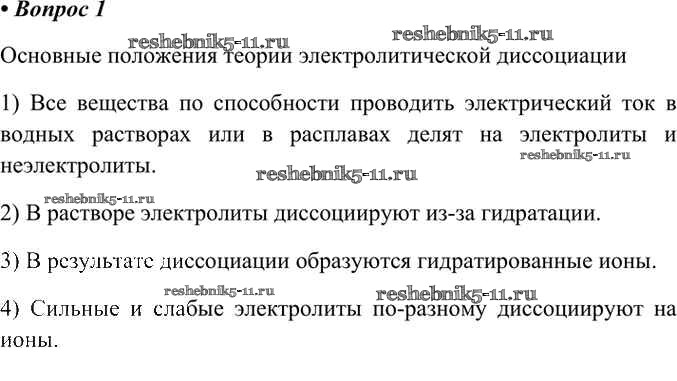Готовая домашняя работа с ответами по Химии за 9 класс Габриелян, Остроумов, Сладков Учебник Просвещение 2021 ФГОС - §5. Основные положения теории электролитической диссоциации 1