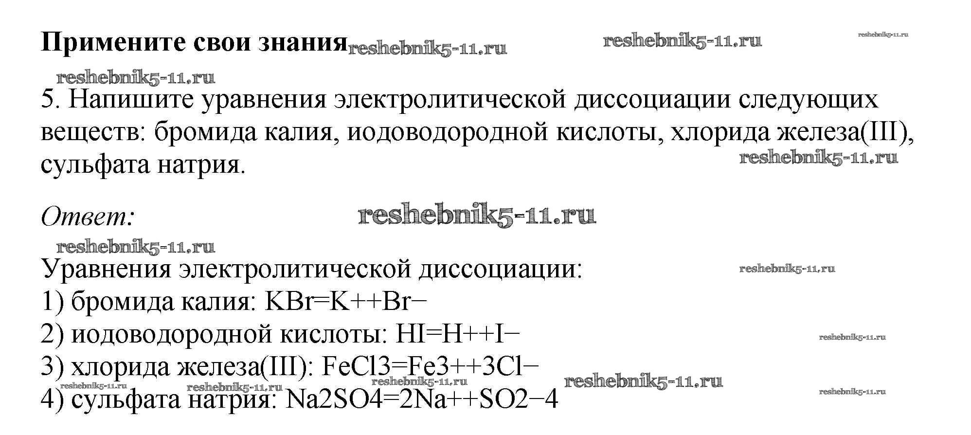 Готовая домашняя работа с ответами по Химии за 9 класс Габриелян, Остроумов, Сладков Учебник Просвещение 2021 ФГОС - §5. Основные положения теории электролитической диссоциации 5