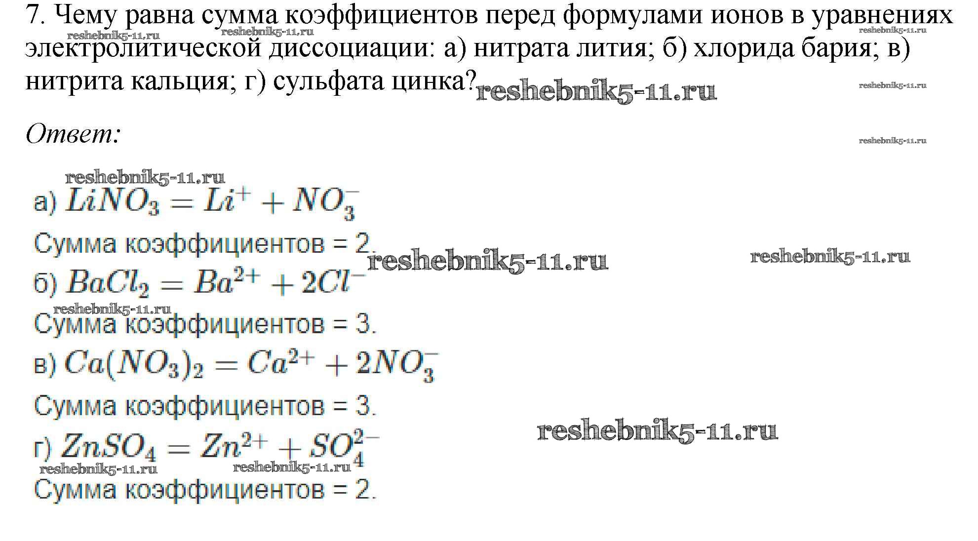 Готовая домашняя работа с ответами по Химии за 9 класс Габриелян, Остроумов, Сладков Учебник Просвещение 2021 ФГОС - §5. Основные положения теории электролитической диссоциации 7