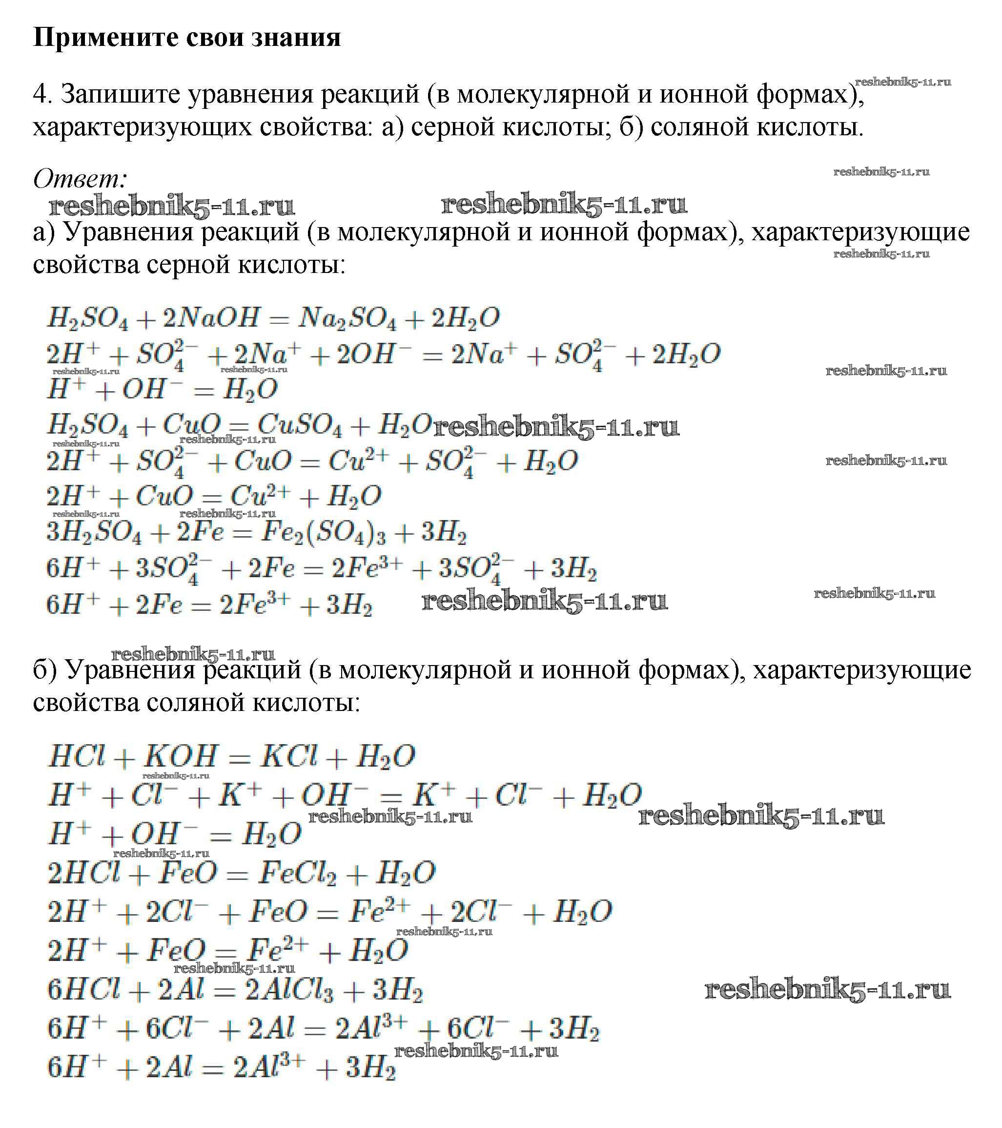 Готовая домашняя работа с ответами по Химии за 9 класс Габриелян, Остроумов, Сладков Учебник Просвещение 2021 ФГОС - §6. Химические свойства кислот как электролитов 4