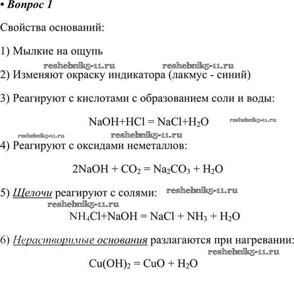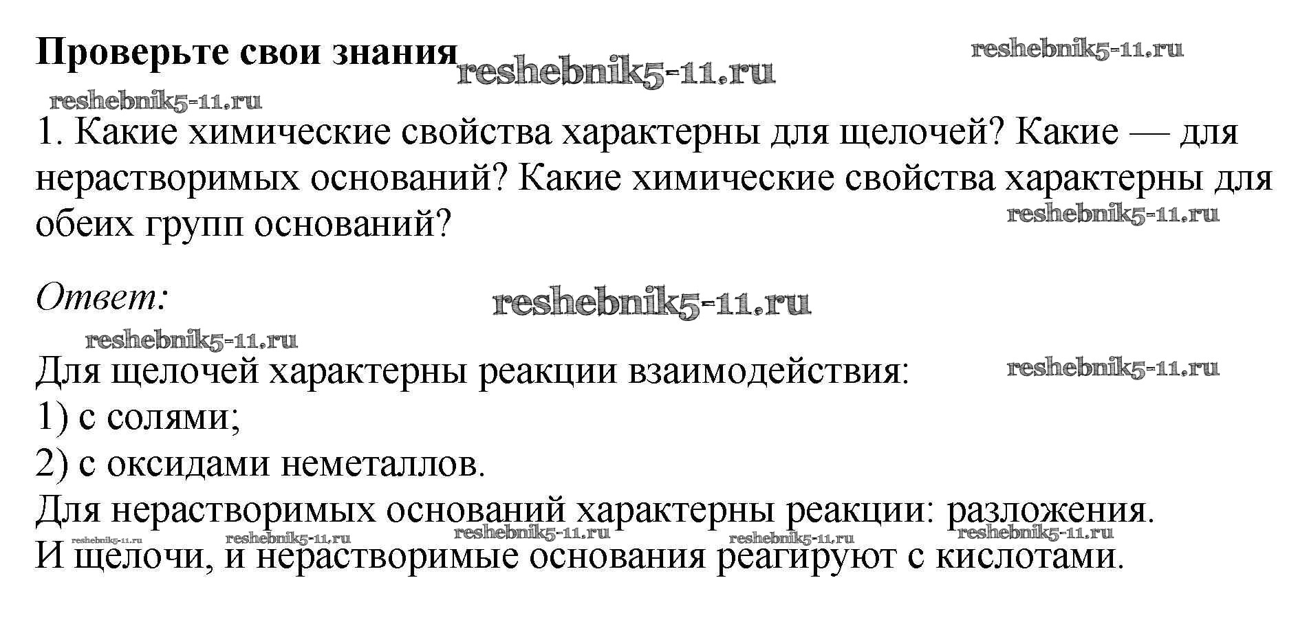 Готовая домашняя работа с ответами по Химии за 9 класс Габриелян, Остроумов, Сладков Учебник Просвещение 2021 ФГОС - §7. Химические свойства оснований как электролитов 1