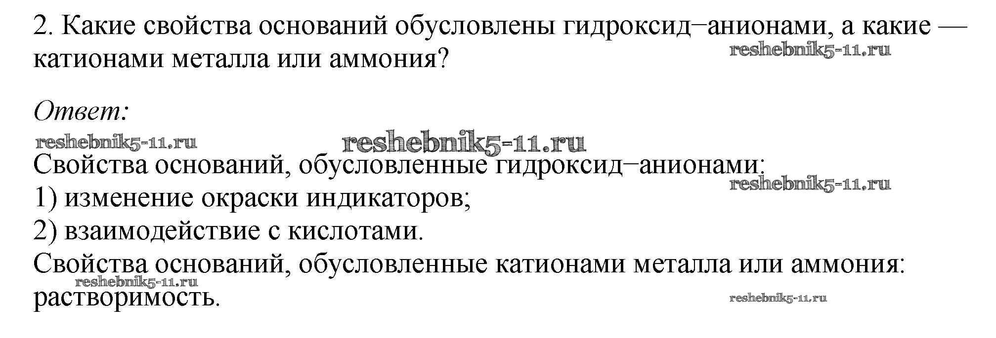 Готовая домашняя работа с ответами по Химии за 9 класс Габриелян, Остроумов, Сладков Учебник Просвещение 2021 ФГОС - §7. Химические свойства оснований как электролитов 2