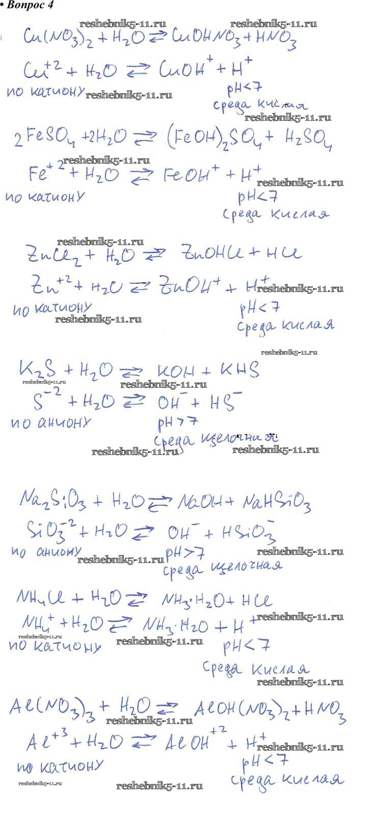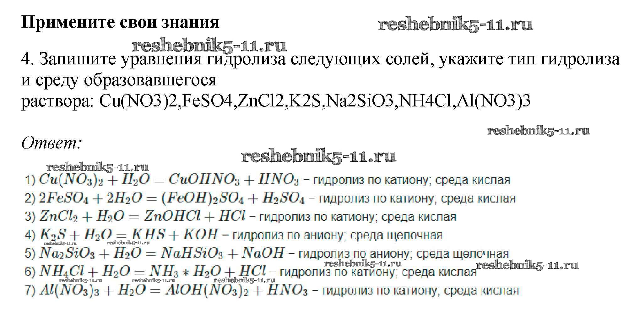 Готовая домашняя работа с ответами по Химии за 9 класс Габриелян, Остроумов, Сладков Учебник Просвещение 2021 ФГОС - §9. Гидролиз солей 4