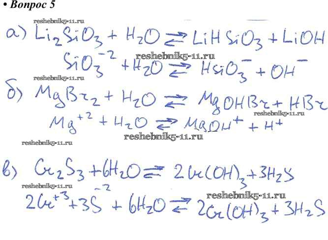 Готовая домашняя работа с ответами по Химии за 9 класс Габриелян, Остроумов, Сладков Учебник Просвещение 2021 ФГОС - §9. Гидролиз солей 5