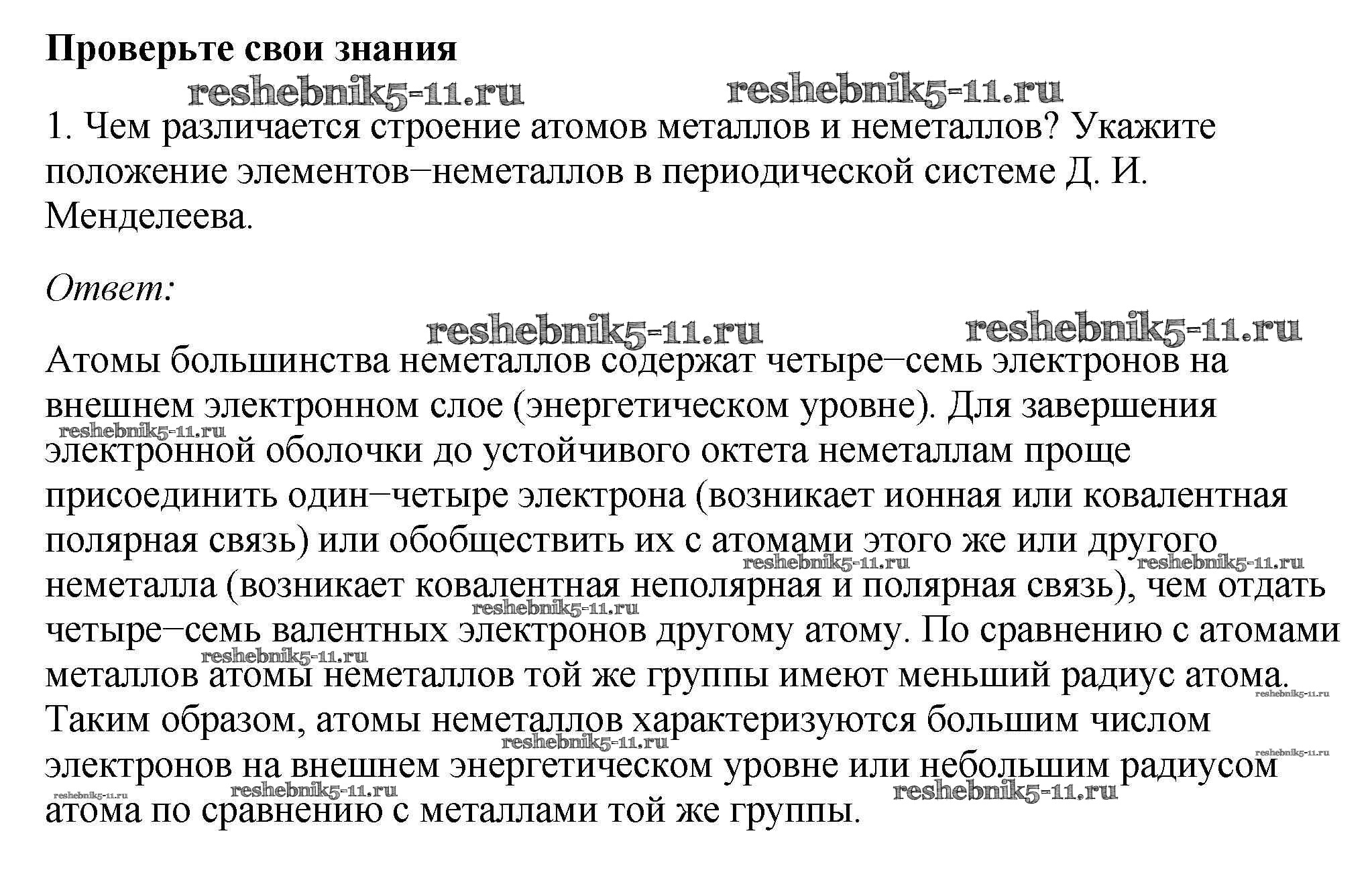Готовая домашняя работа с ответами по Химии за 9 класс Габриелян, Остроумов, Сладков Учебник Просвещение 2021 ФГОС - §10. Общая характеристика неметаллов 1