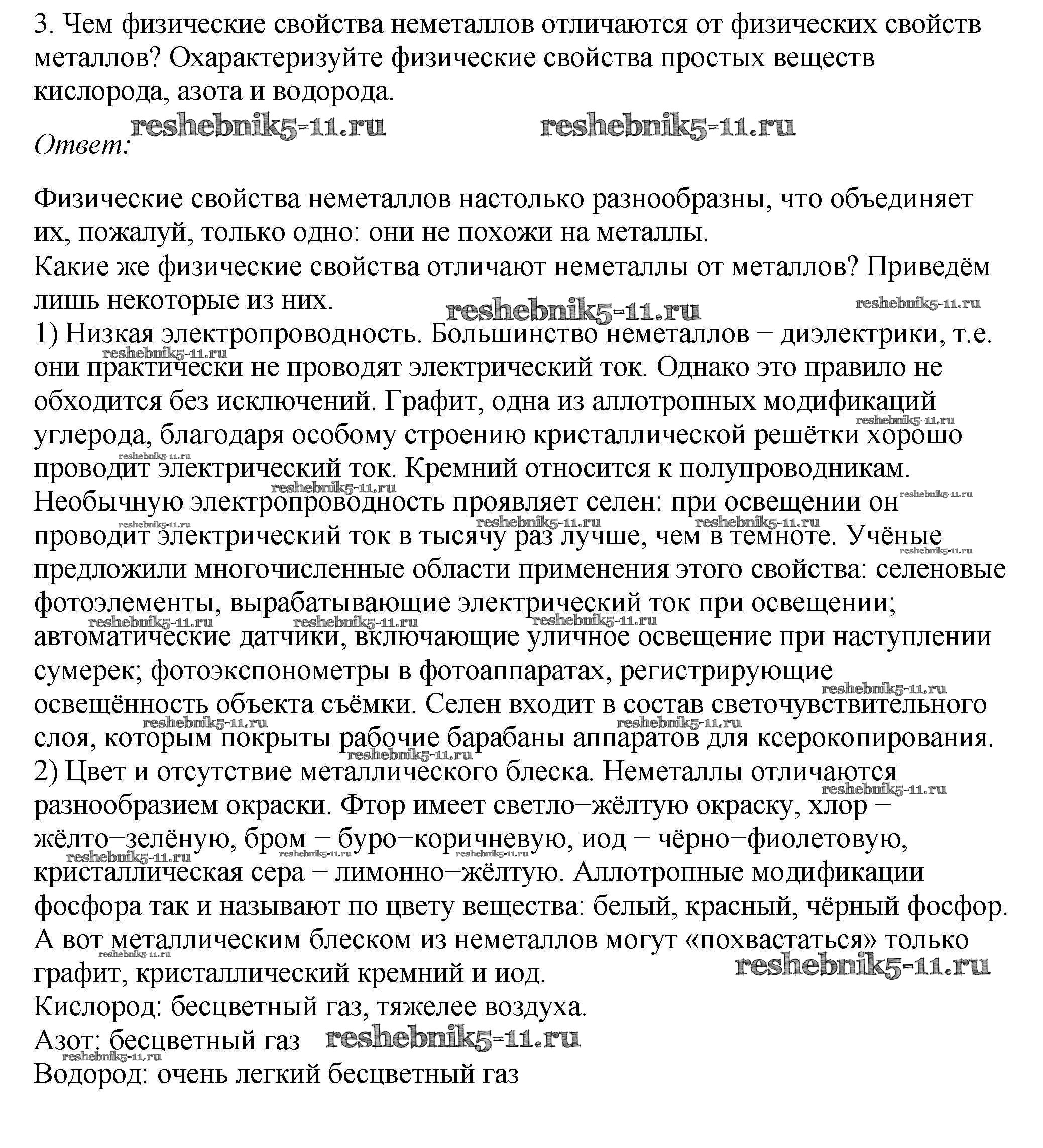 Готовая домашняя работа с ответами по Химии за 9 класс Габриелян, Остроумов, Сладков Учебник Просвещение 2021 ФГОС - §10. Общая характеристика неметаллов 3