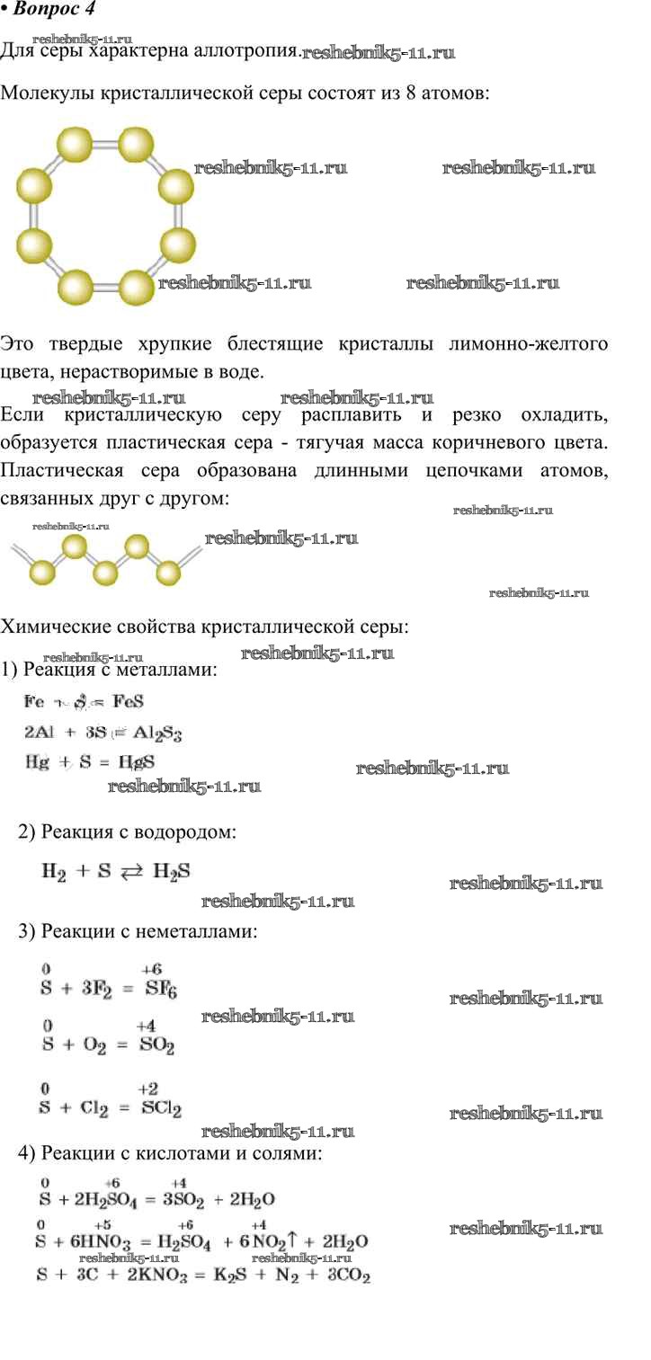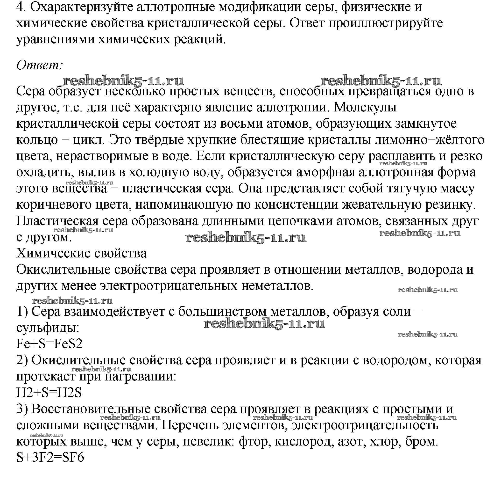 Готовая домашняя работа с ответами по Химии за 9 класс Габриелян, Остроумов, Сладков Учебник Просвещение 2021 ФГОС - §13. Халькогены. Сера 4