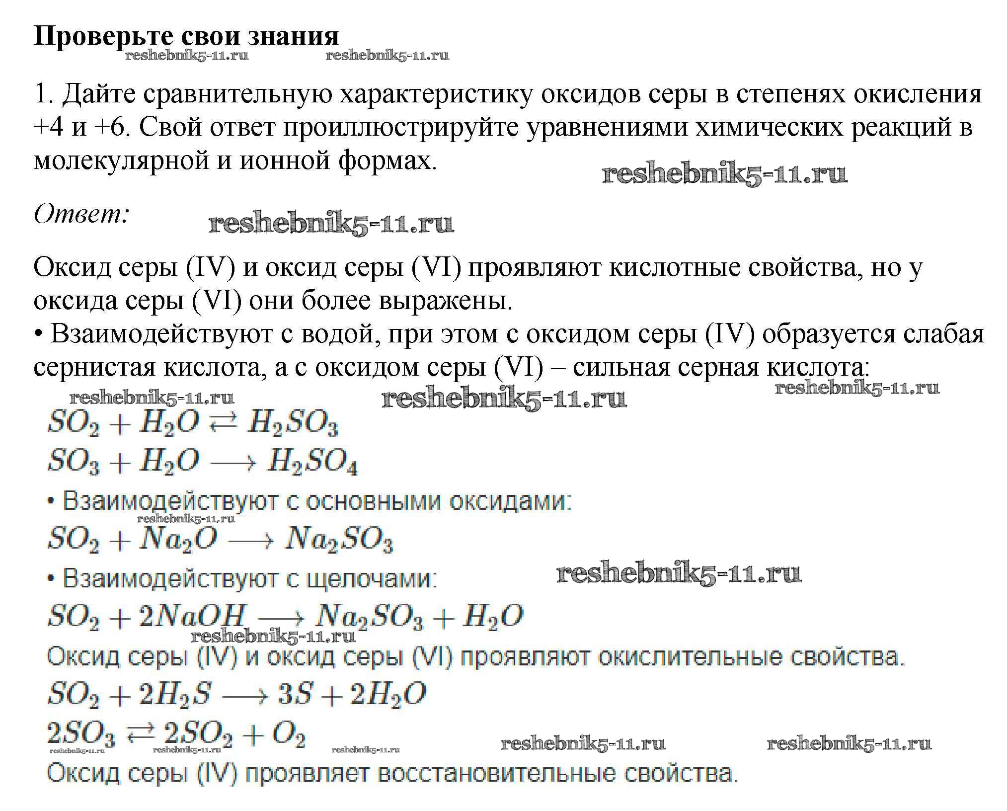 Готовая домашняя работа с ответами по Химии за 9 класс Габриелян, Остроумов, Сладков Учебник Просвещение 2021 ФГОС - §15. Кислородные соединения серы 1