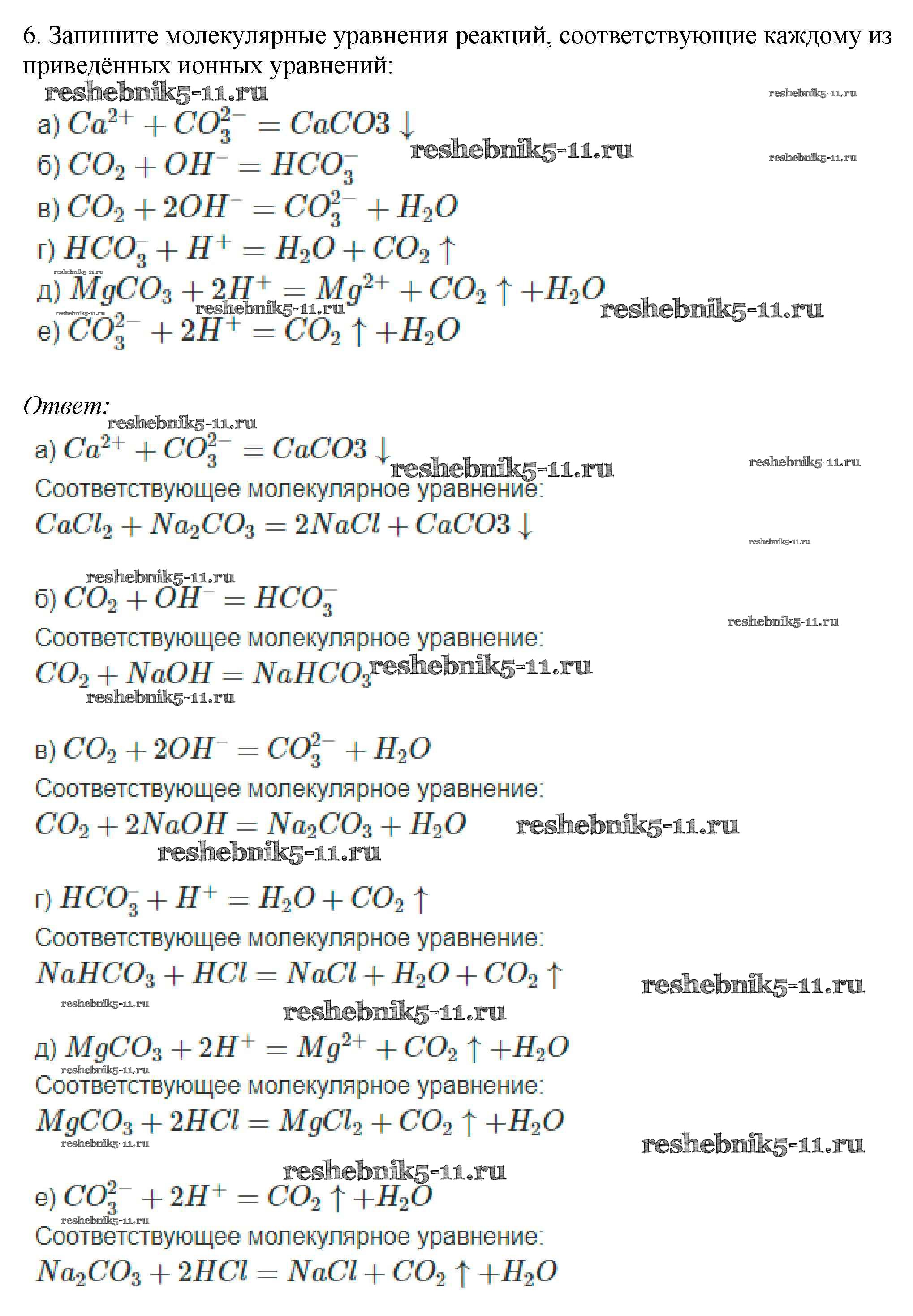 Готовая домашняя работа с ответами по Химии за 9 класс Габриелян, Остроумов, Сладков Учебник Просвещение 2021 ФГОС - §21. Кислородные соединения углерода 6