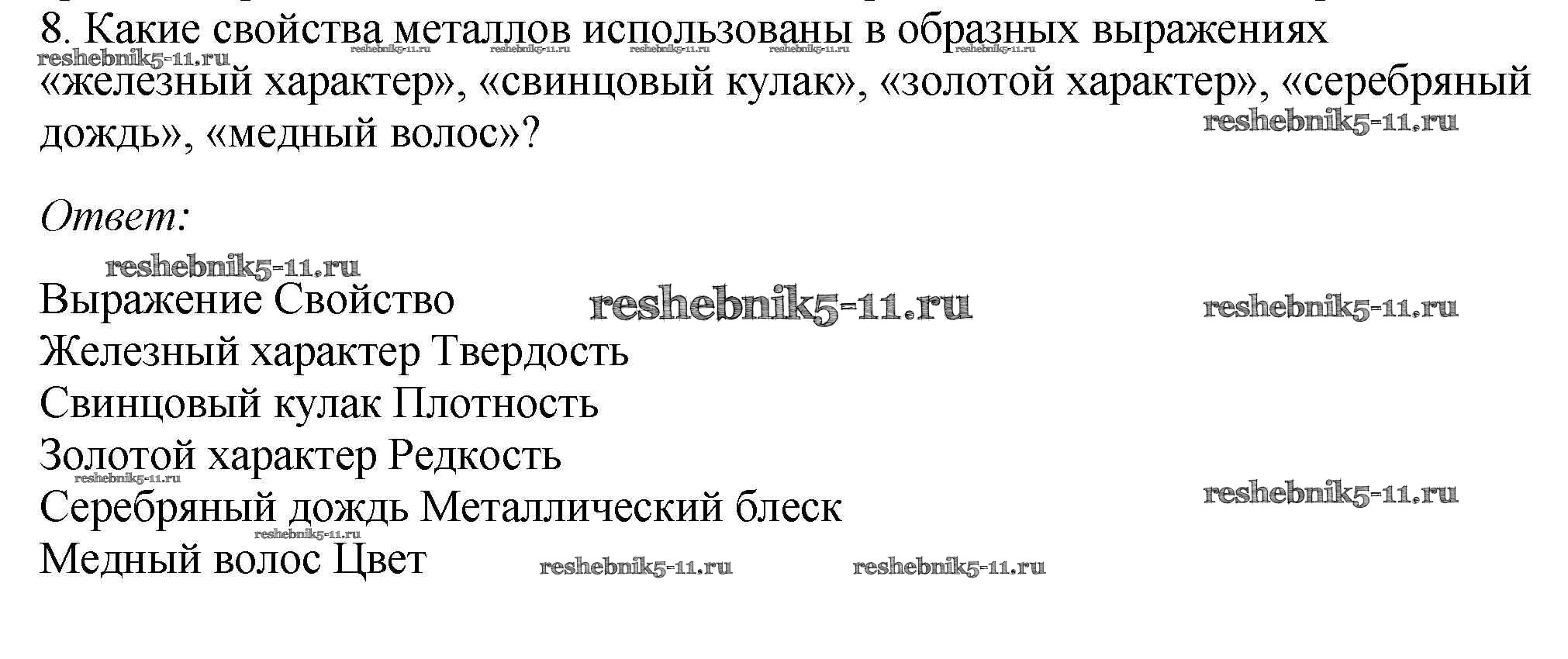 Готовая домашняя работа с ответами по Химии за 9 класс Габриелян, Остроумов, Сладков Учебник Просвещение 2021 ФГОС - §28. Общая характеристика металлов 8