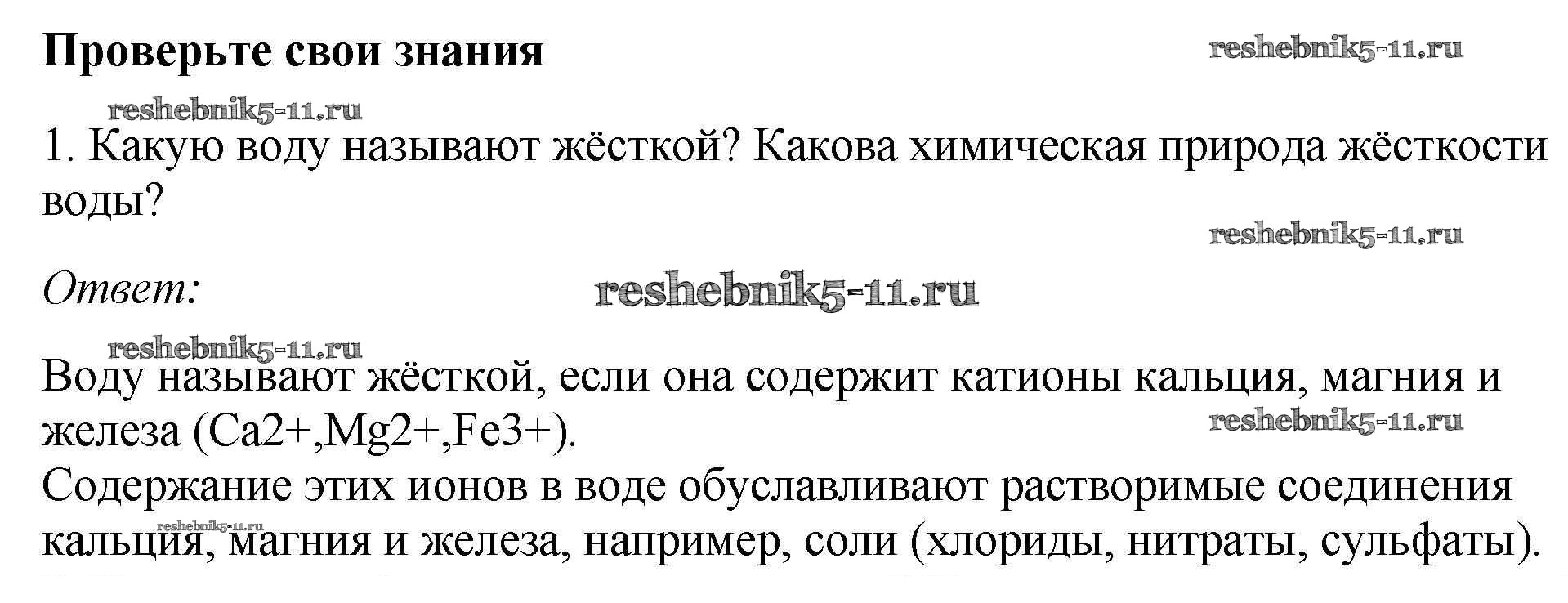 Готовая домашняя работа с ответами по Химии за 9 класс Габриелян, Остроумов, Сладков Учебник Просвещение 2021 ФГОС - §32. Жёсткость воды и способы её устранения 1