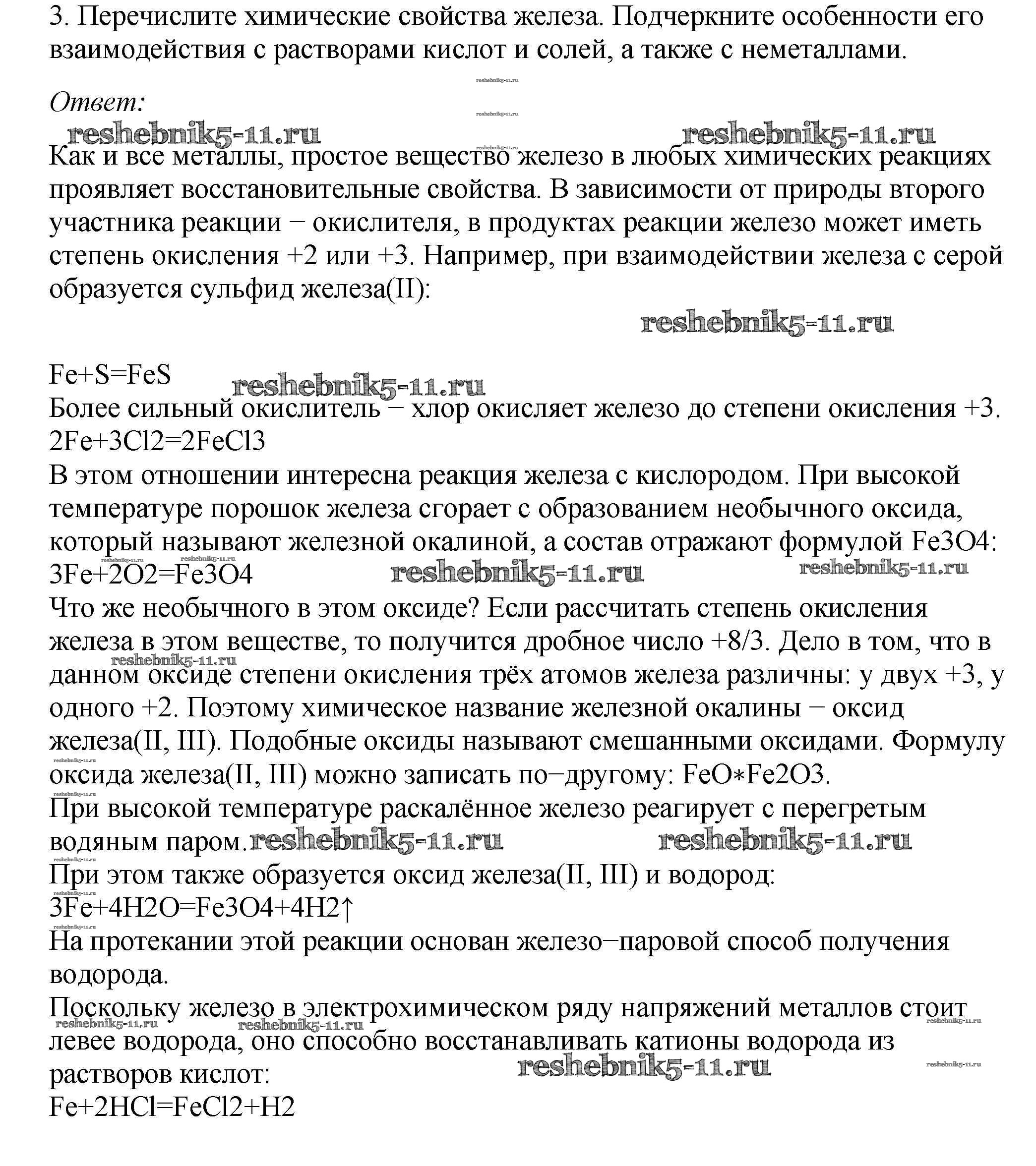 Готовая домашняя работа с ответами по Химии за 9 класс Габриелян, Остроумов, Сладков Учебник Просвещение 2021 ФГОС - §34. Железо и его соединения 3