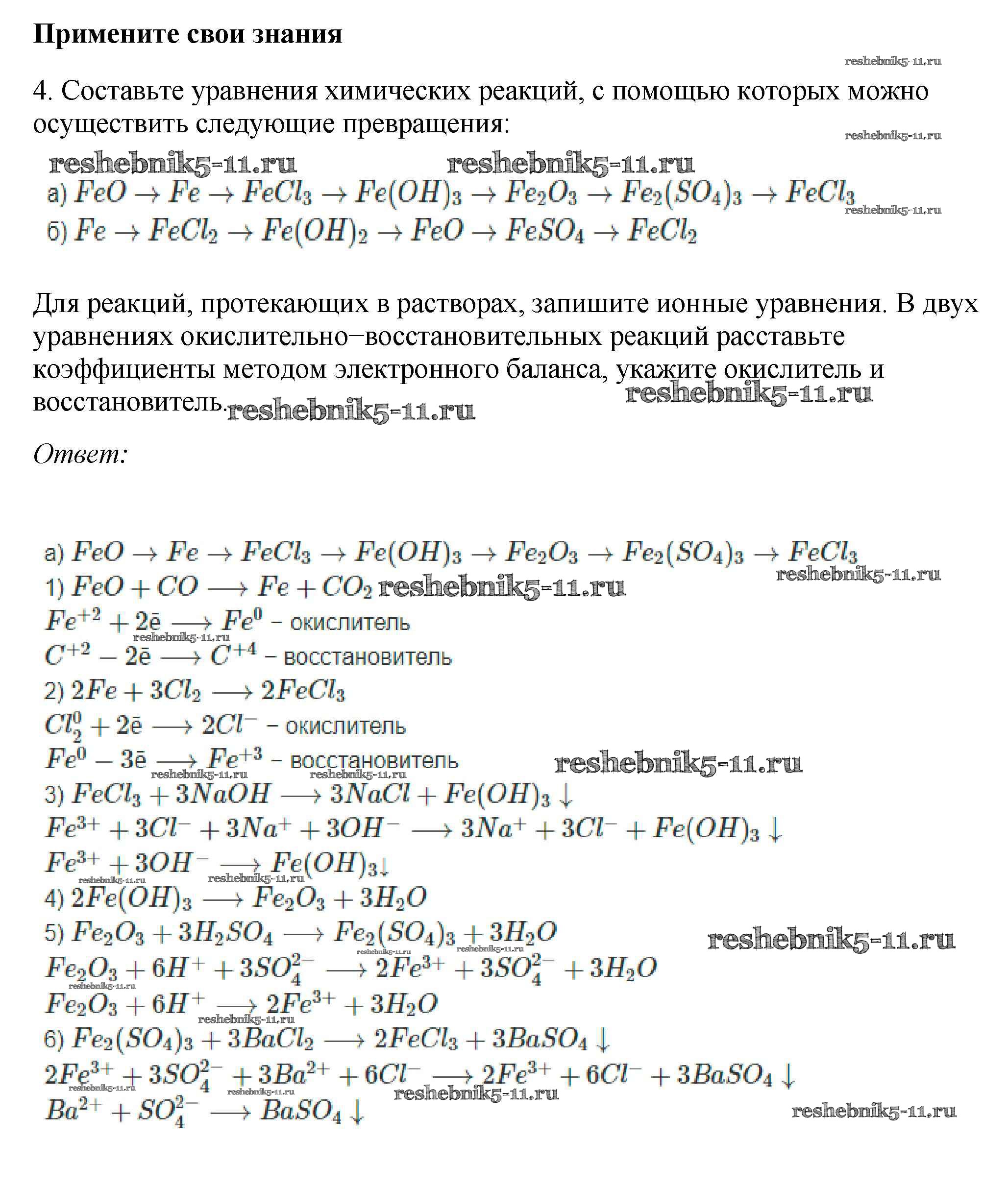 Готовая домашняя работа с ответами по Химии за 9 класс Габриелян, Остроумов, Сладков Учебник Просвещение 2021 ФГОС - §34. Железо и его соединения 4