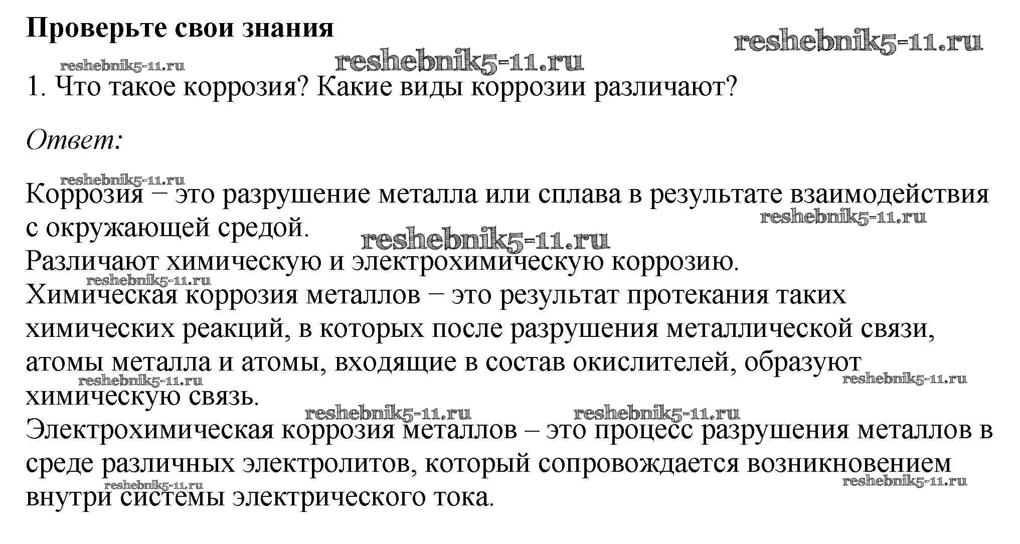 Готовая домашняя работа с ответами по Химии за 9 класс Габриелян, Остроумов, Сладков Учебник Просвещение 2021 ФГОС - §35. Коррозия металлов и способы защиты от неё 1