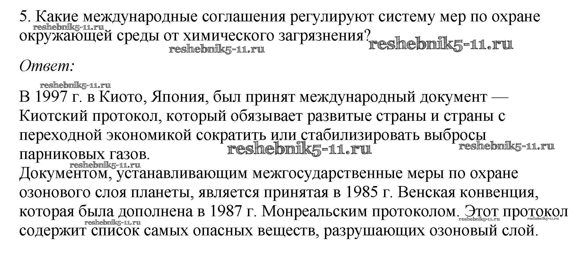 Готовая домашняя работа с ответами по Химии за 9 класс Габриелян, Остроумов, Сладков Учебник Просвещение 2021 ФГОС - §38. Охрана окружающей среды от химического загрязнения 5