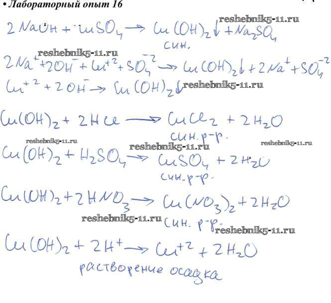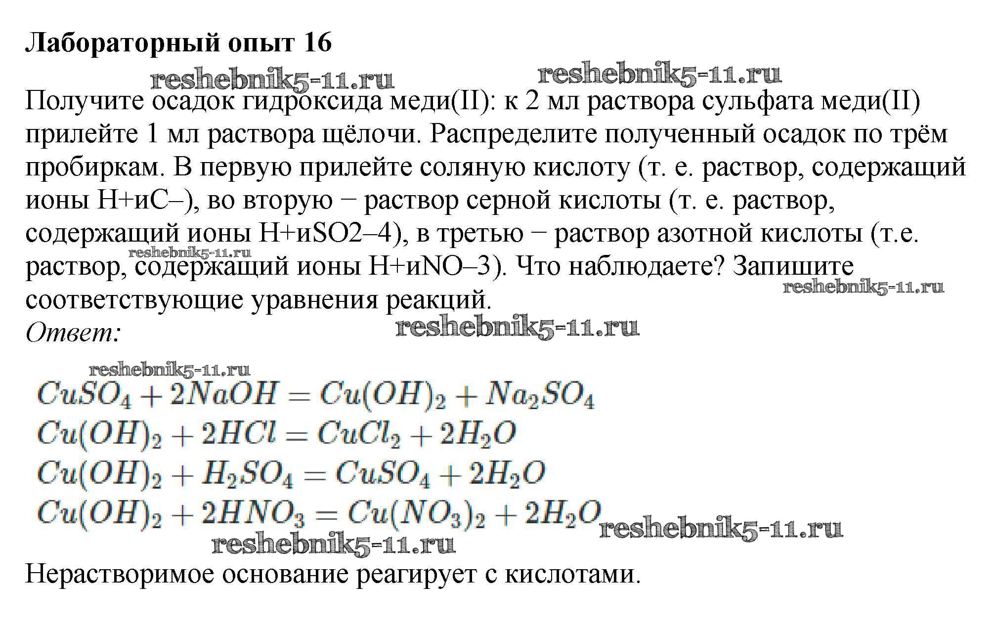 Готовая домашняя работа с ответами по Химии за 9 класс Габриелян, Остроумов, Сладков Учебник Просвещение 2021 ФГОС - Лабораторные опыты 16