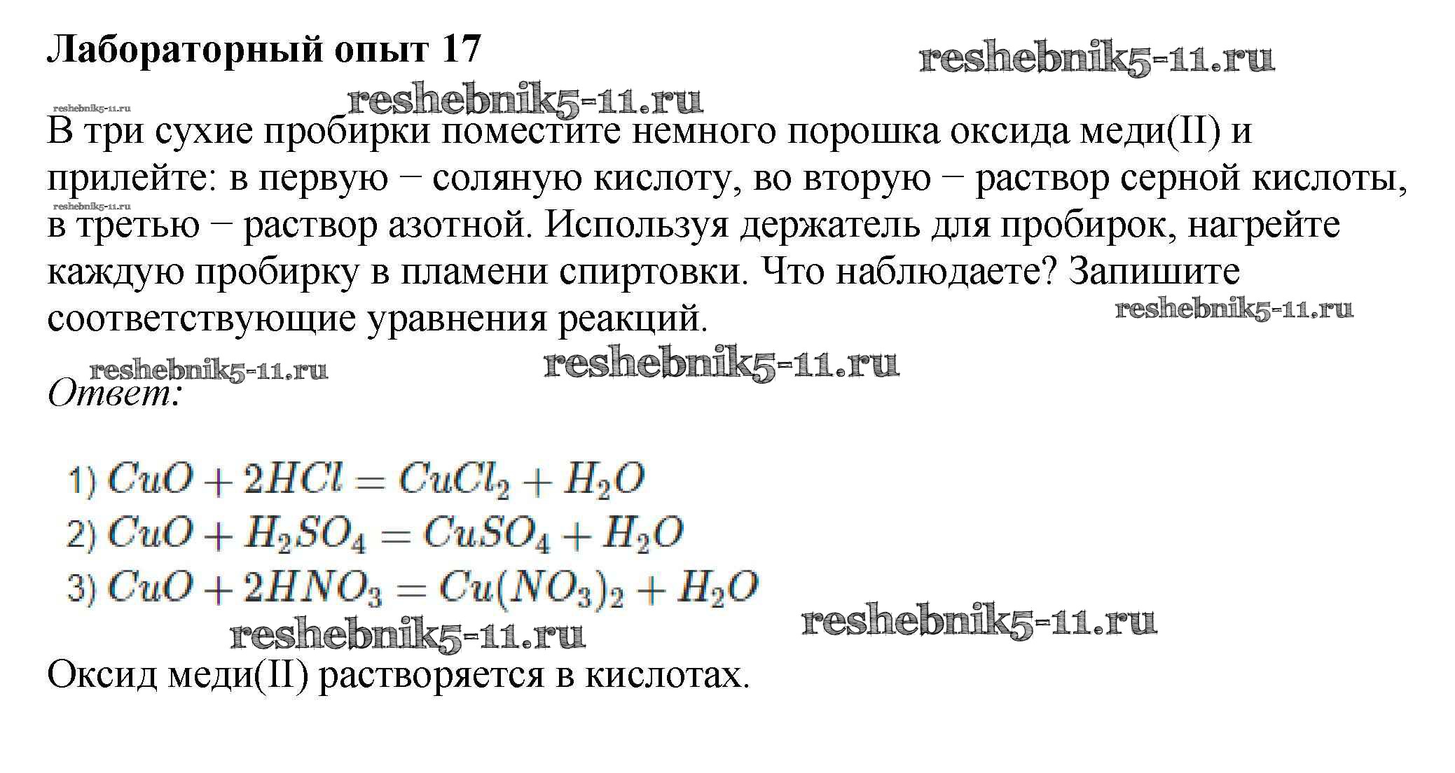 Готовая домашняя работа с ответами по Химии за 9 класс Габриелян, Остроумов, Сладков Учебник Просвещение 2021 ФГОС - Лабораторные опыты 17
