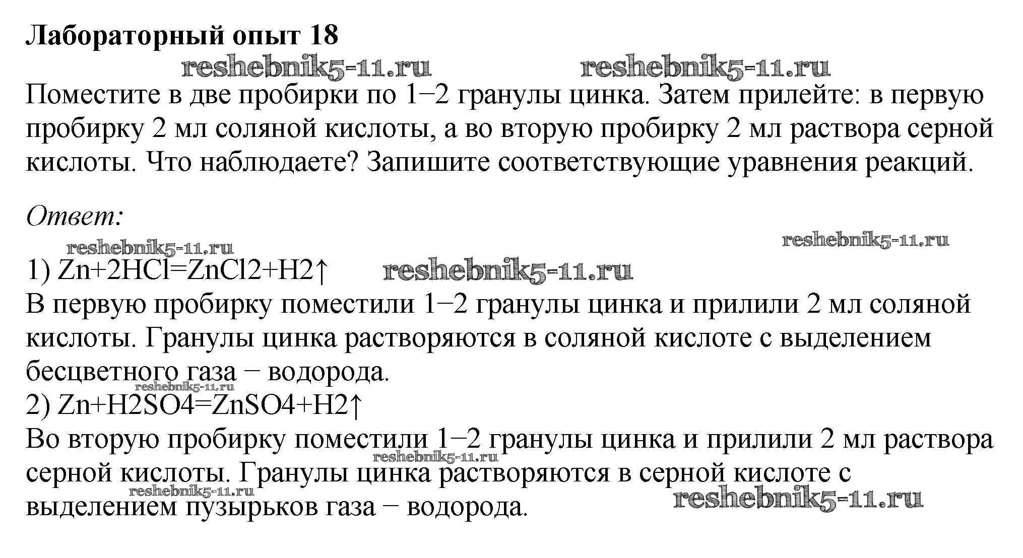 Готовая домашняя работа с ответами по Химии за 9 класс Габриелян, Остроумов, Сладков Учебник Просвещение 2021 ФГОС - Лабораторные опыты 18