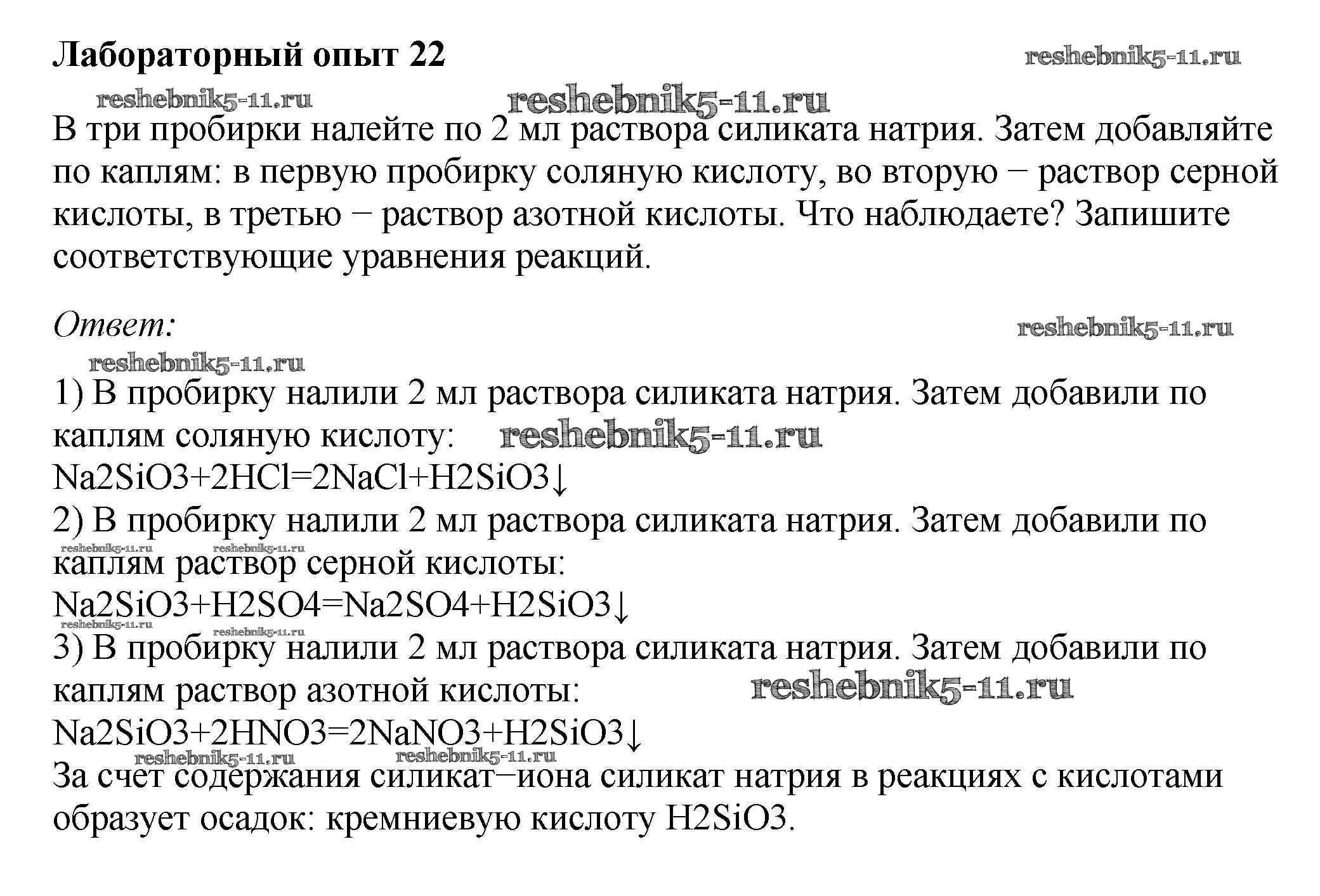 Готовая домашняя работа с ответами по Химии за 9 класс Габриелян, Остроумов, Сладков Учебник Просвещение 2021 ФГОС - Лабораторные опыты 22