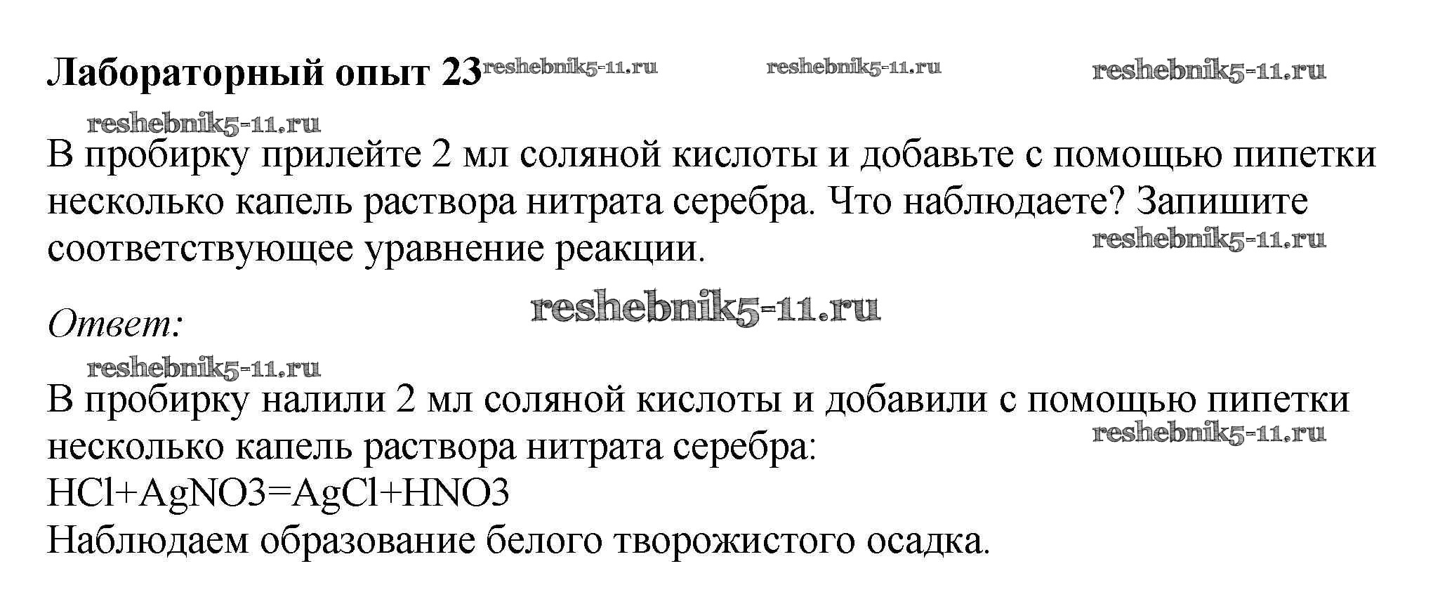 Готовая домашняя работа с ответами по Химии за 9 класс Габриелян, Остроумов, Сладков Учебник Просвещение 2021 ФГОС - Лабораторные опыты 23