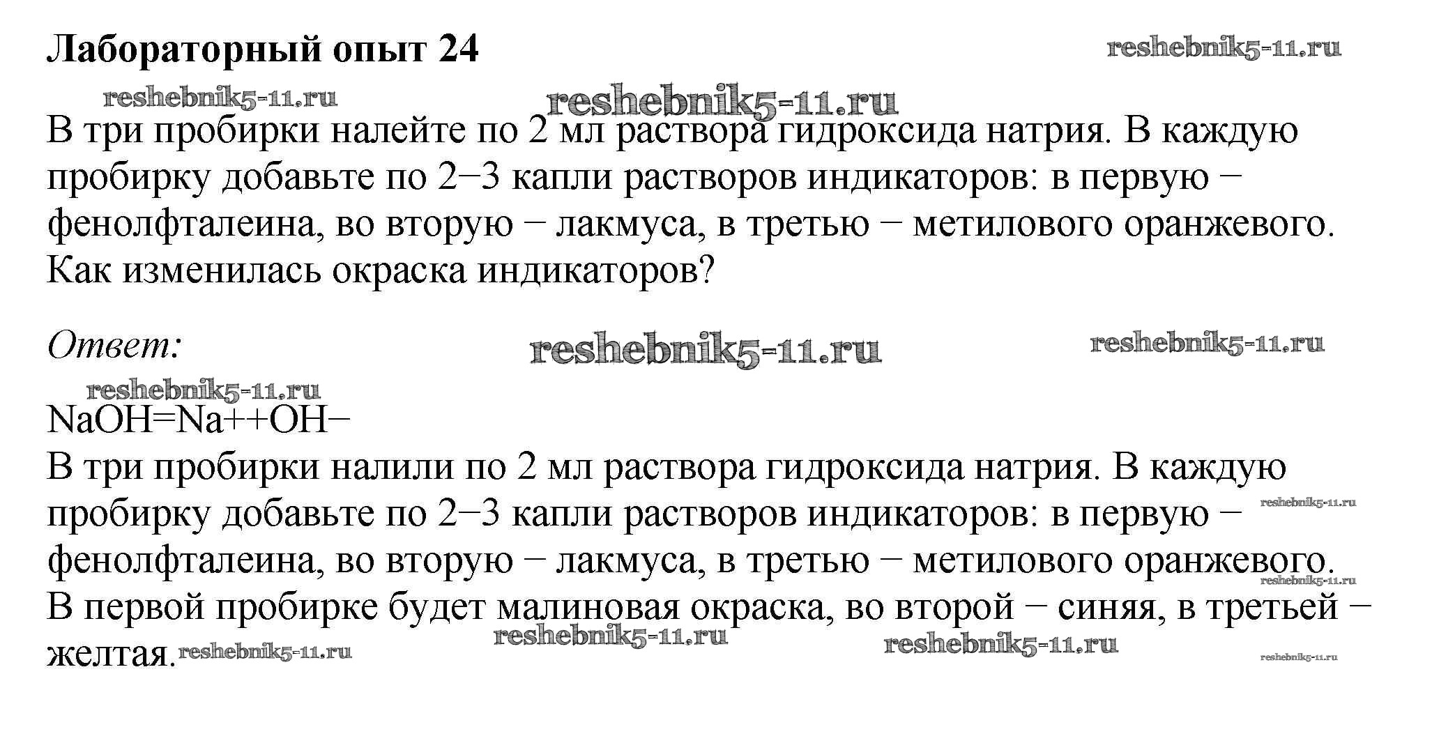 Готовая домашняя работа с ответами по Химии за 9 класс Габриелян, Остроумов, Сладков Учебник Просвещение 2021 ФГОС - Лабораторные опыты 24