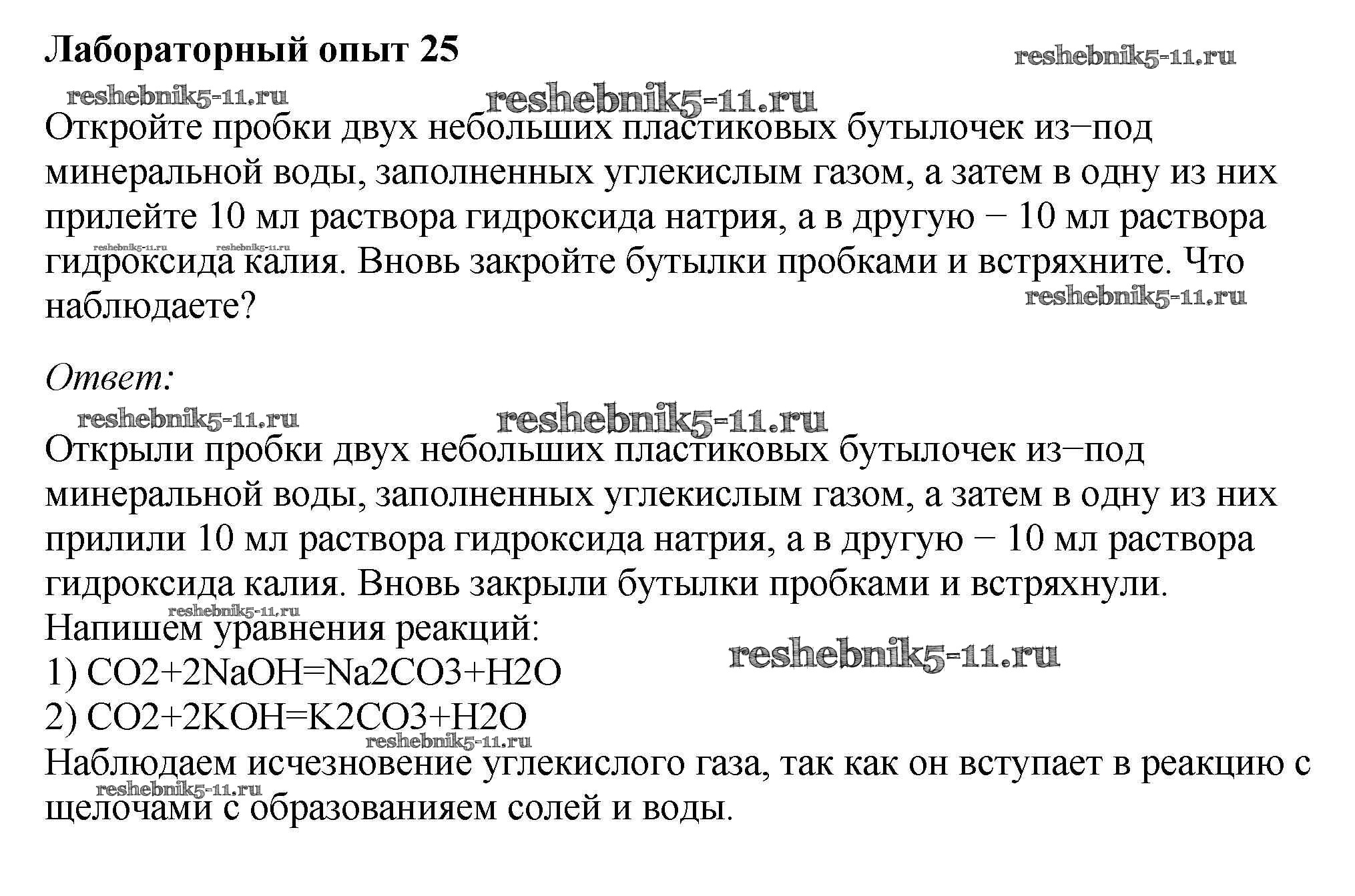 Готовая домашняя работа с ответами по Химии за 9 класс Габриелян, Остроумов, Сладков Учебник Просвещение 2021 ФГОС - Лабораторные опыты 25