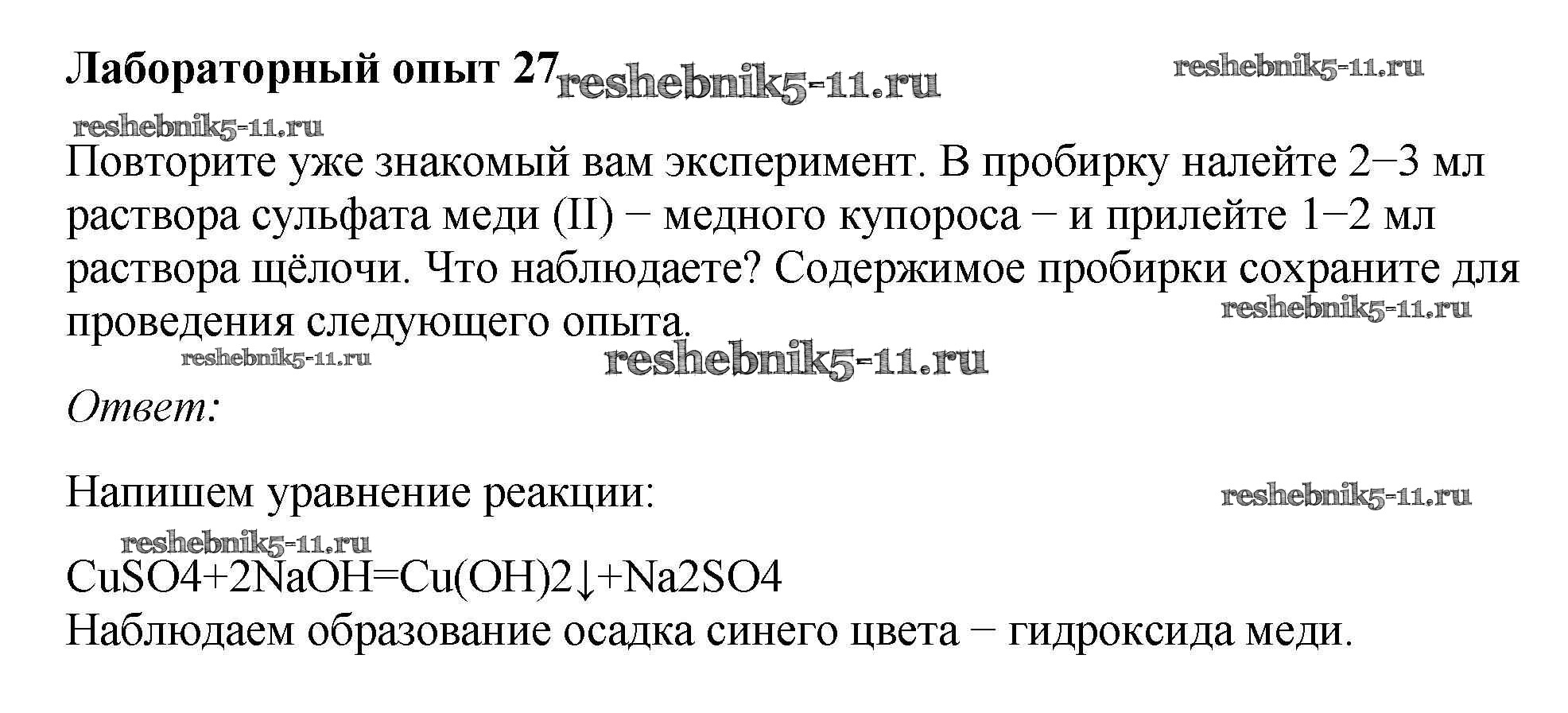 Готовая домашняя работа с ответами по Химии за 9 класс Габриелян, Остроумов, Сладков Учебник Просвещение 2021 ФГОС - Лабораторные опыты 27