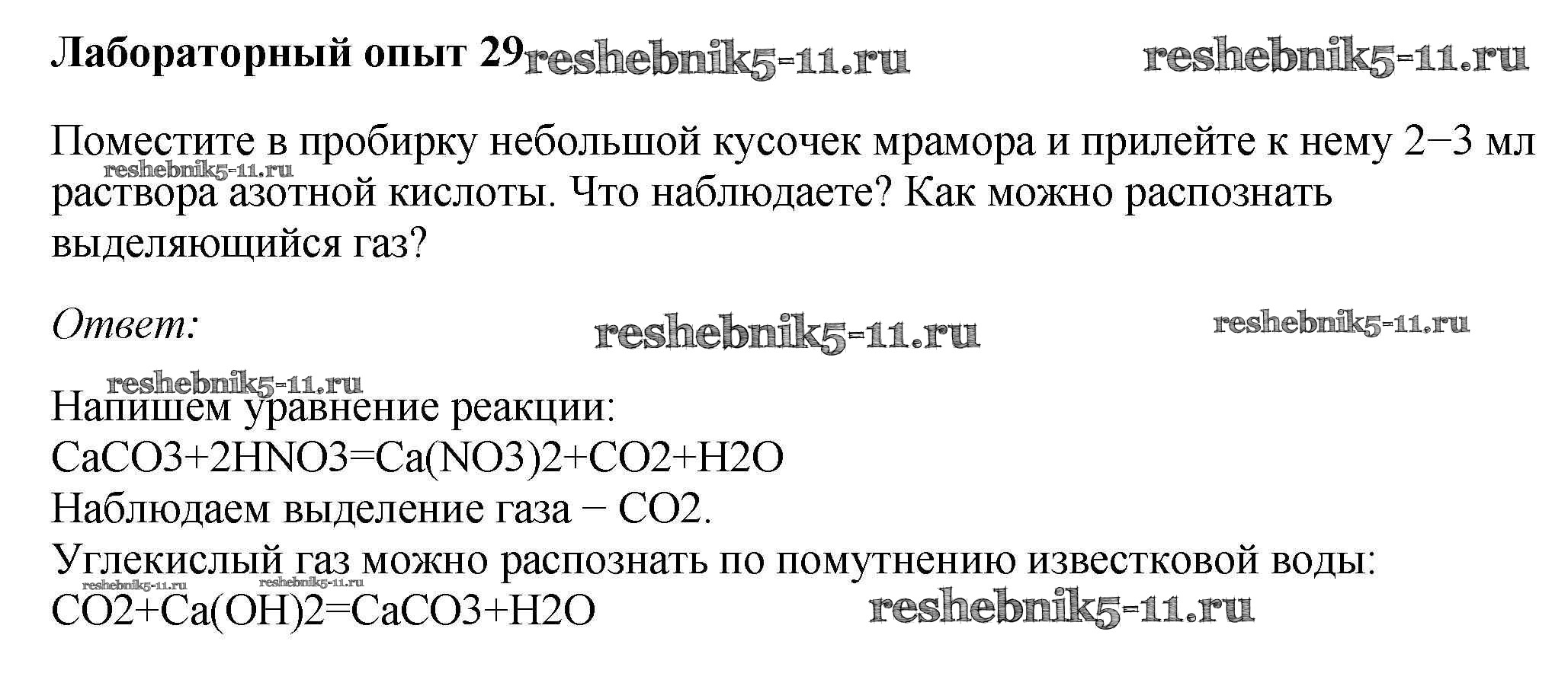 Готовая домашняя работа с ответами по Химии за 9 класс Габриелян, Остроумов, Сладков Учебник Просвещение 2021 ФГОС - Лабораторные опыты 29