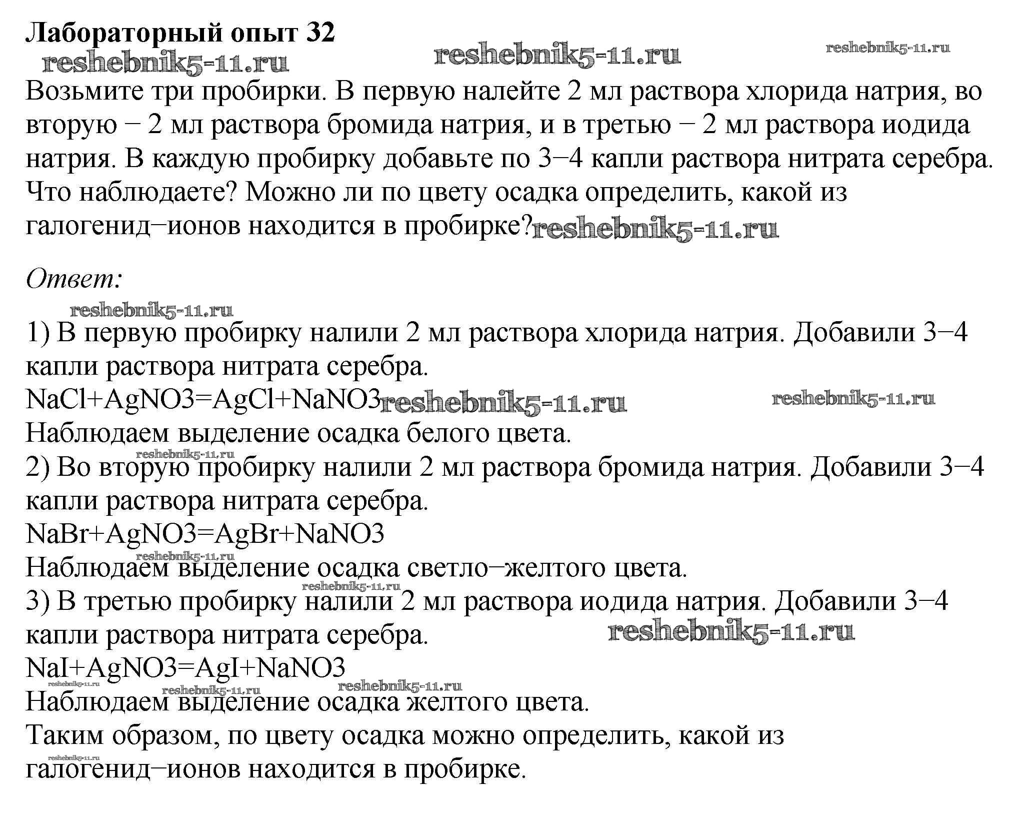 Готовая домашняя работа с ответами по Химии за 9 класс Габриелян, Остроумов, Сладков Учебник Просвещение 2021 ФГОС - Лабораторные опыты 32