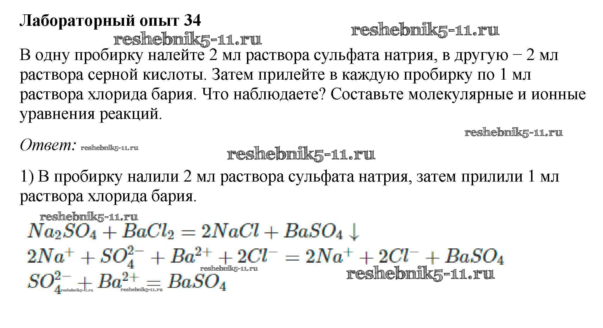 Готовая домашняя работа с ответами по Химии за 9 класс Габриелян, Остроумов, Сладков Учебник Просвещение 2021 ФГОС - Лабораторные опыты 34