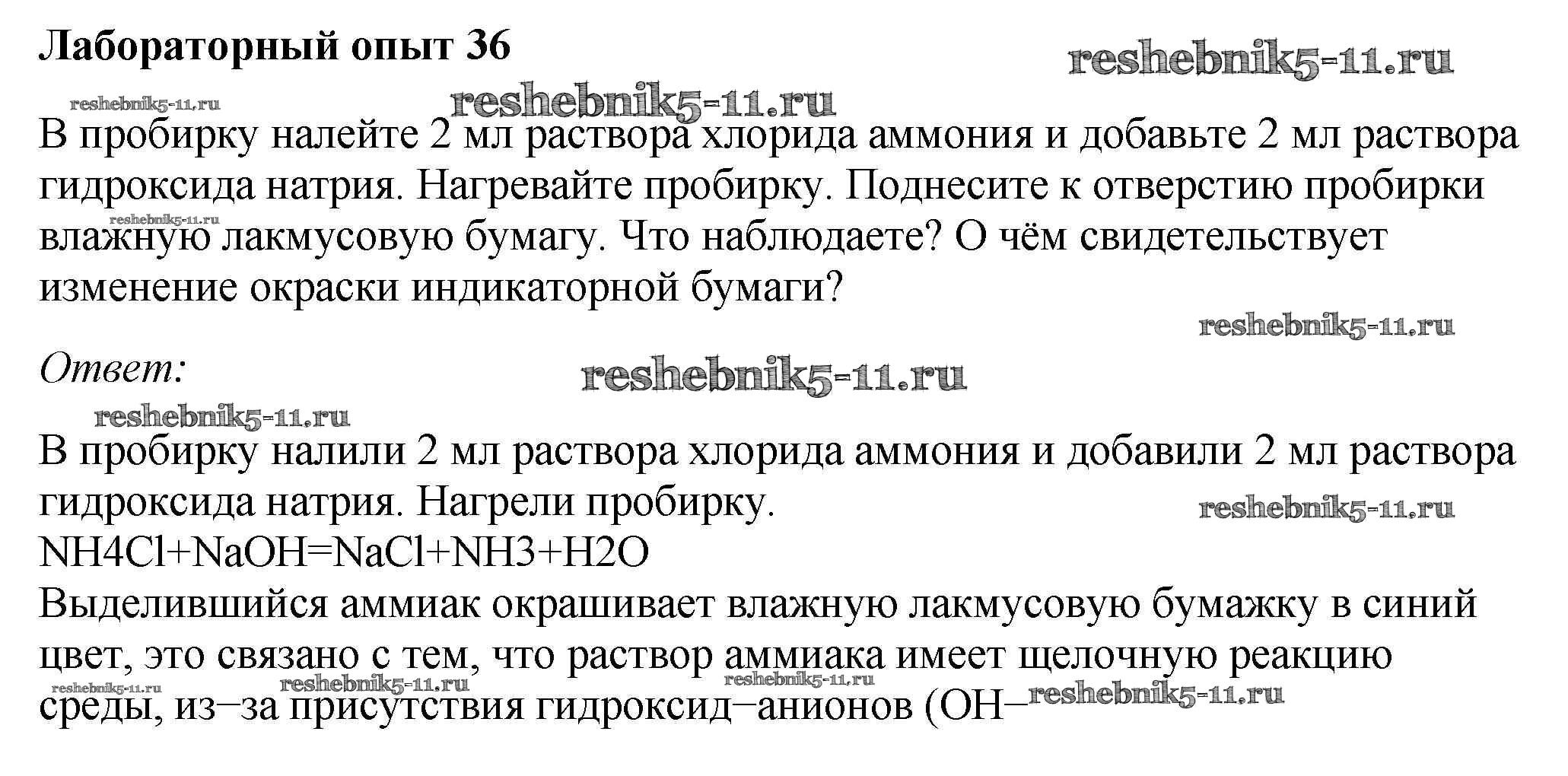 Готовая домашняя работа с ответами по Химии за 9 класс Габриелян, Остроумов, Сладков Учебник Просвещение 2021 ФГОС - Лабораторные опыты 36