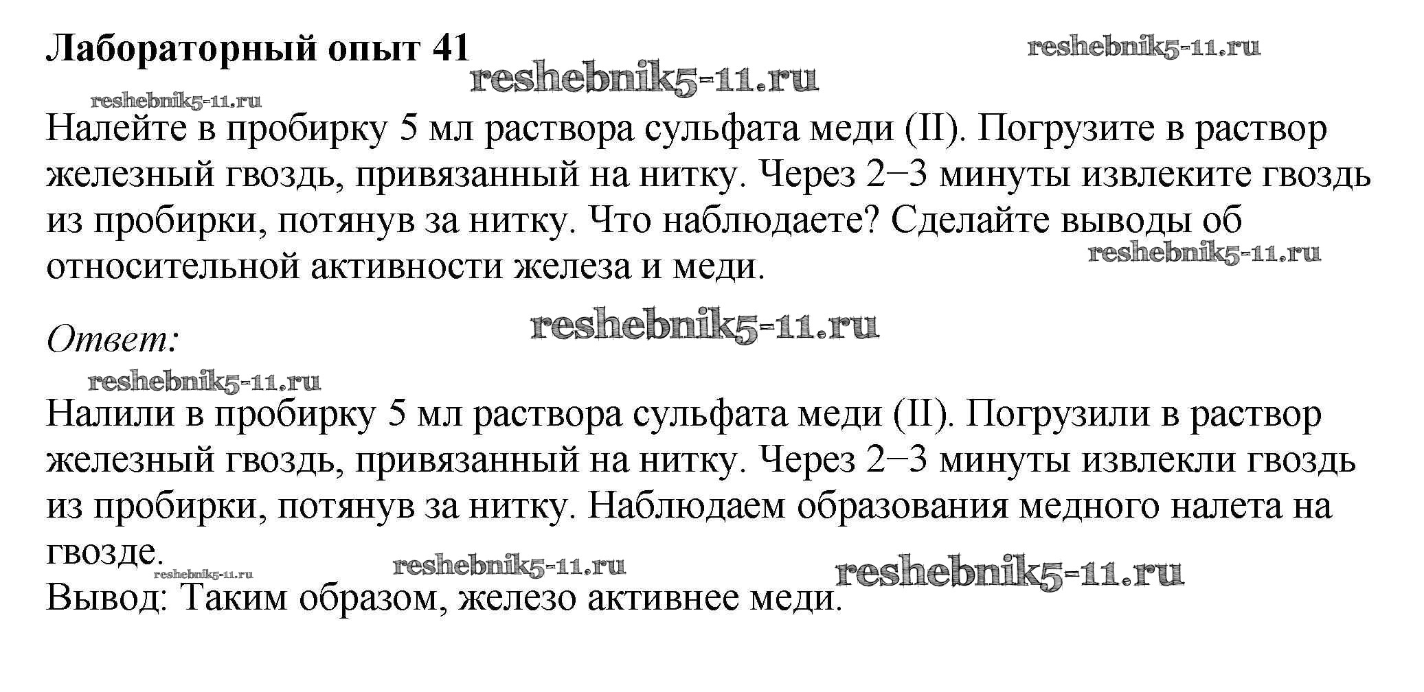 Готовая домашняя работа с ответами по Химии за 9 класс Габриелян, Остроумов, Сладков Учебник Просвещение 2021 ФГОС - Лабораторные опыты 41