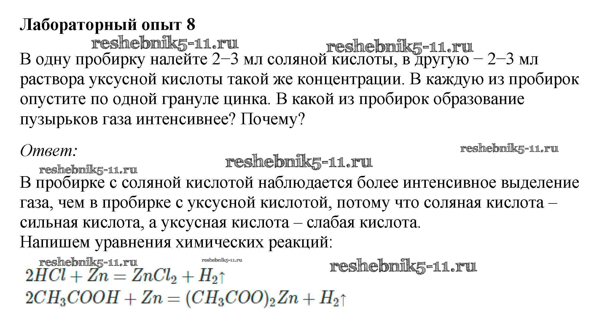 Готовая домашняя работа с ответами по Химии за 9 класс Габриелян, Остроумов, Сладков Учебник Просвещение 2021 ФГОС - Лабораторные опыты 8
