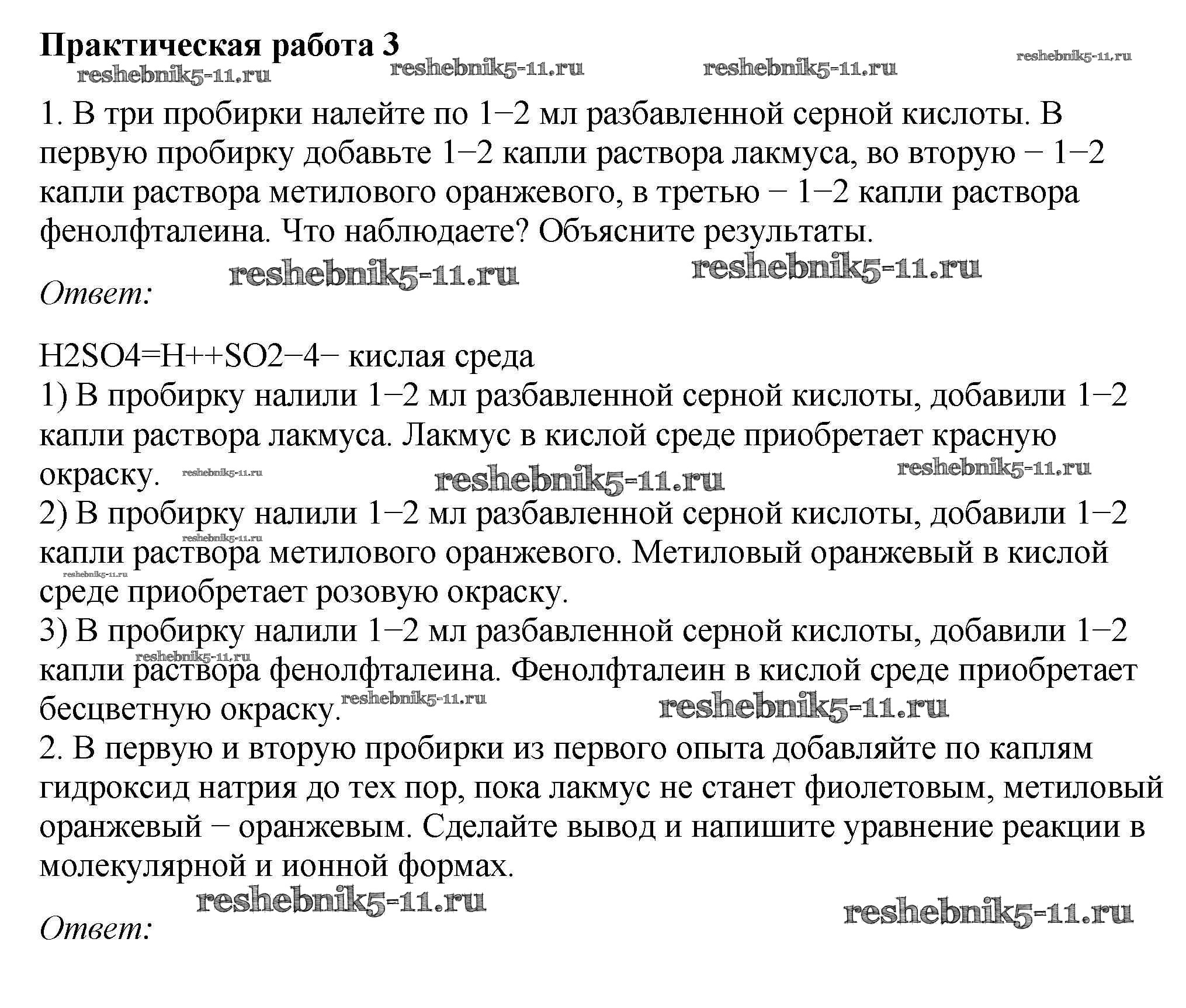 Готовая домашняя работа с ответами по Химии за 9 класс Габриелян, Остроумов, Сладков Учебник Просвещение 2021 ФГОС - Практические работы 3