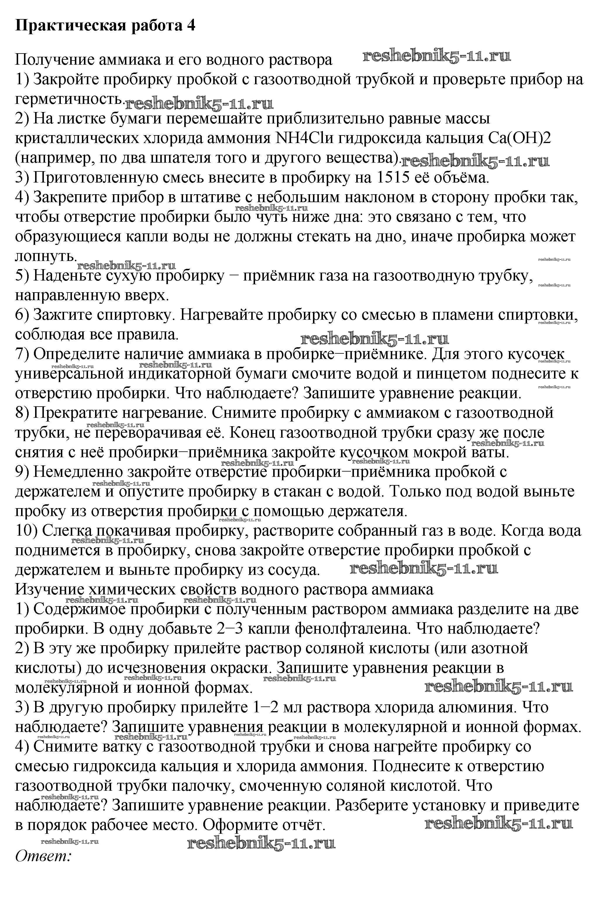 Готовая домашняя работа с ответами по Химии за 9 класс Габриелян, Остроумов, Сладков Учебник Просвещение 2021 ФГОС - Практические работы 4