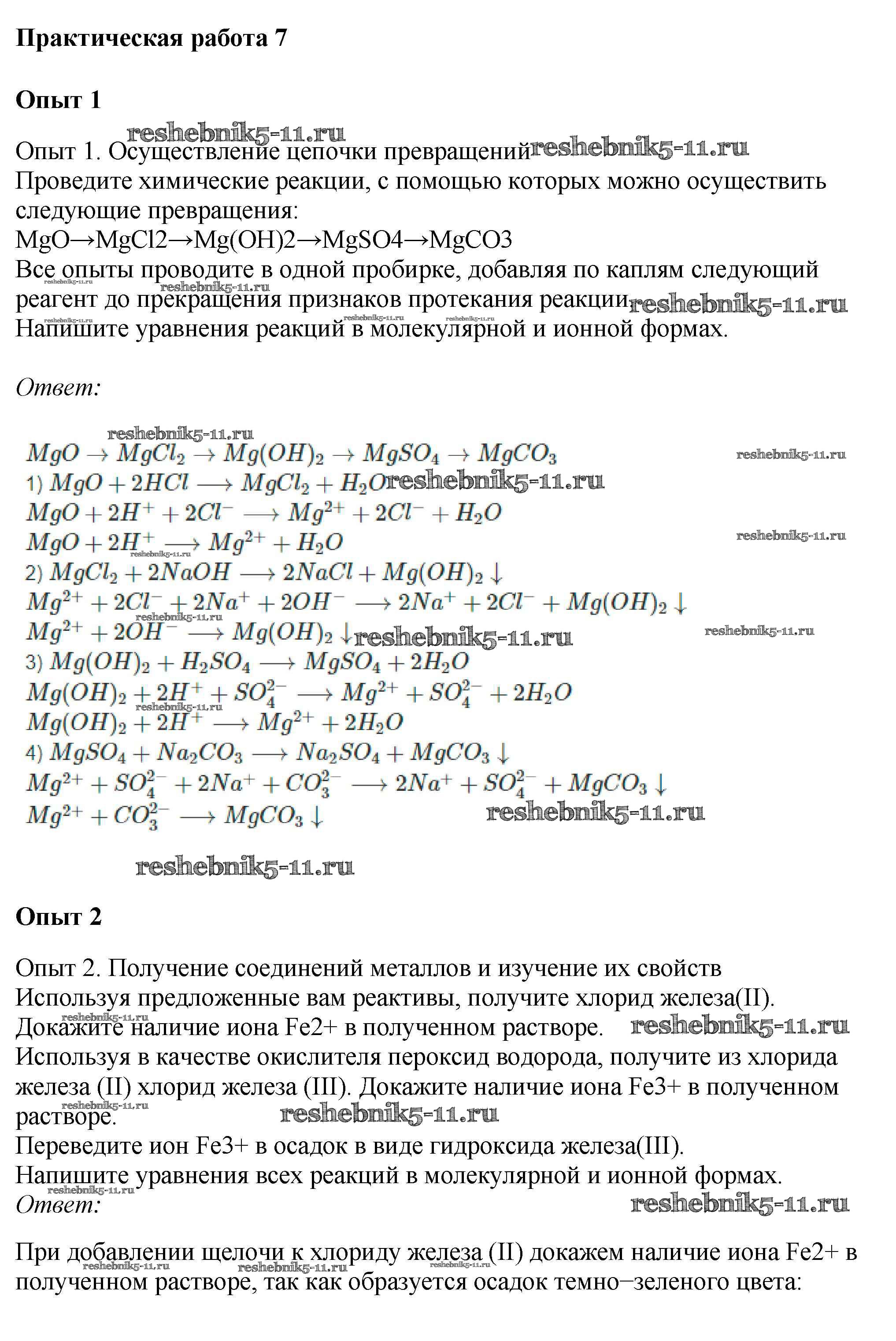 Готовая домашняя работа с ответами по Химии за 9 класс Габриелян, Остроумов, Сладков Учебник Просвещение 2021 ФГОС - Практические работы 7