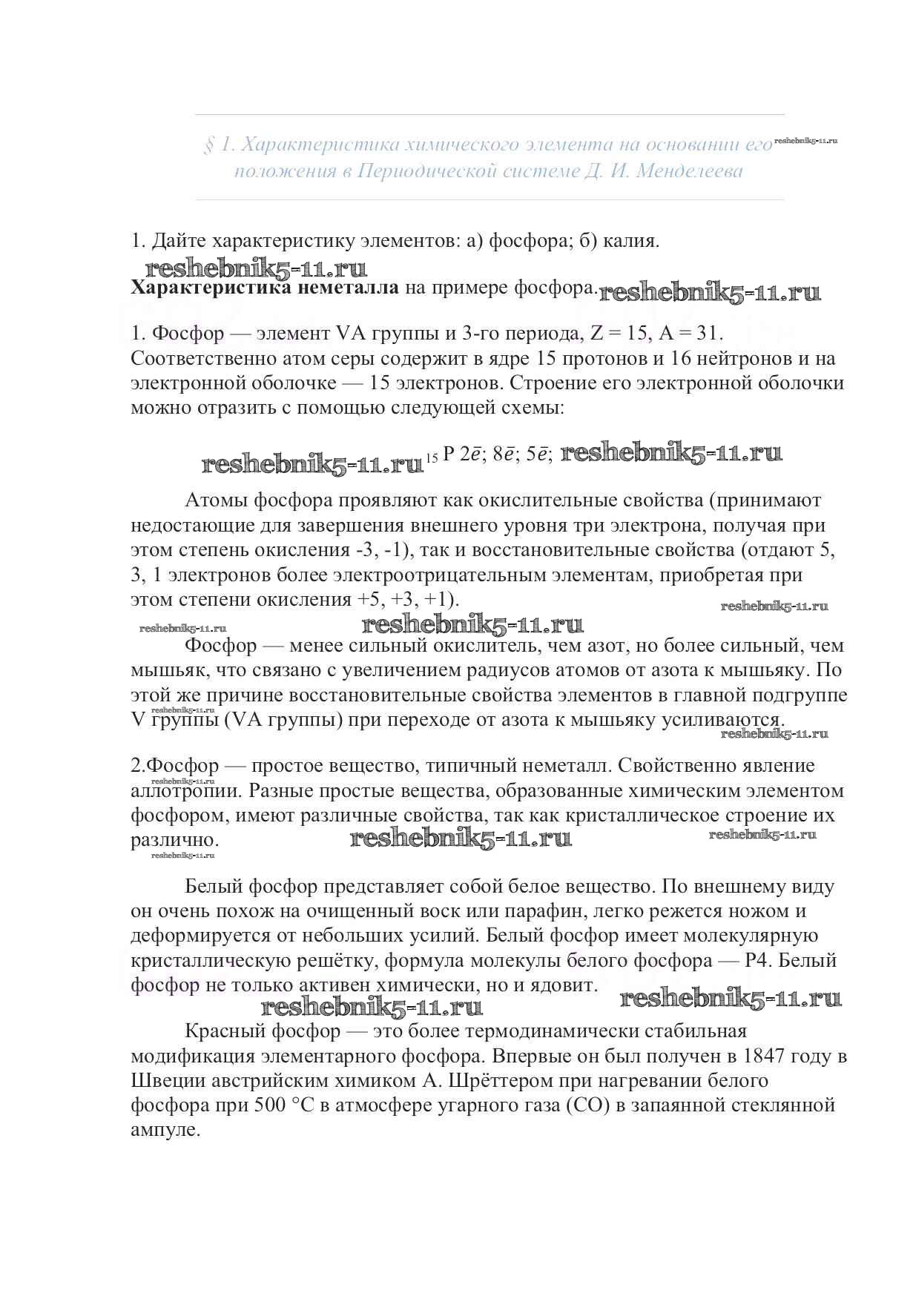 Готовая домашняя работа с ответами по Химии за 9 класс Габриелян Учебник Вертикаль Дрофа 2014 ФГОС - §1. Характеристика химического элемента на основании его положения в Периодической системе Д. И. Менделеева 1